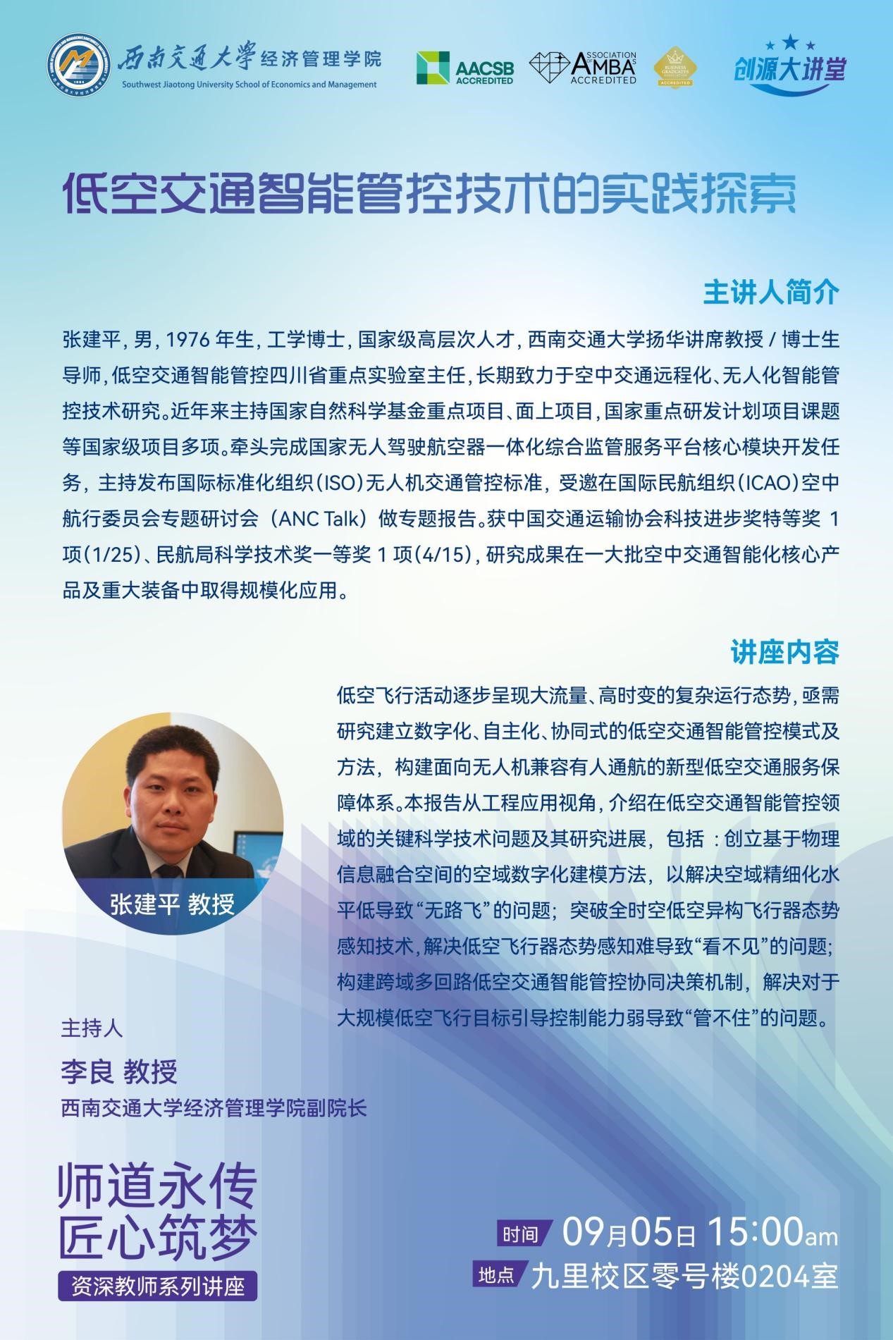 Speaker ProfileProfessor ZHANG Jianping, PhD, is the Yanghua Chair Professor at Southwest Jiaotong University (SWJTU) and Director of Sichuan Key Laboratory of Low-Altitude Traffic Intelligent Control. He is a nationally recognized leading expert in his field and has long focused on remote and unmanned intelligent control technologies for air traffic.He has served as the principal investigator for ...