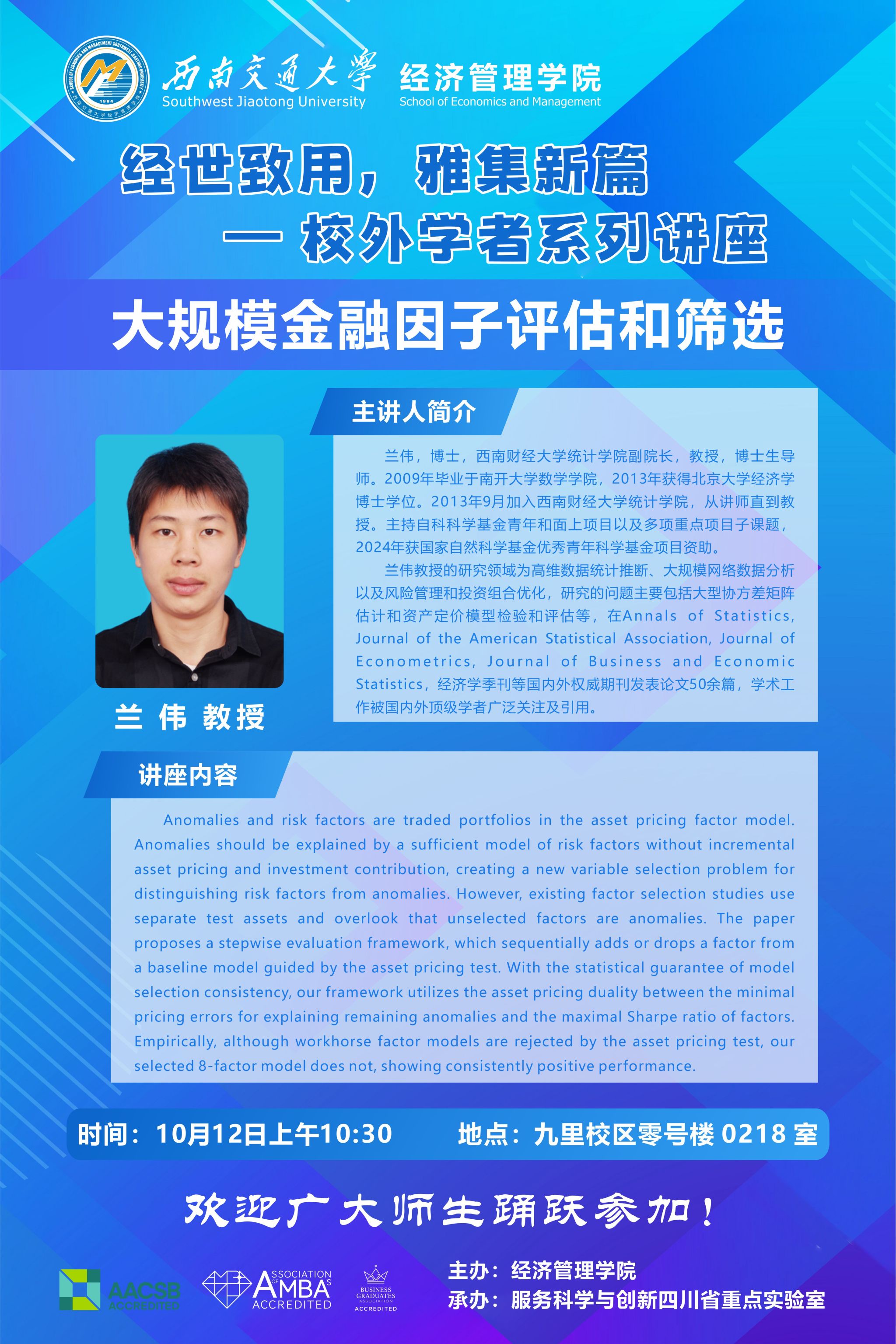 西南财经大学统计学院兰伟教授学术讲座