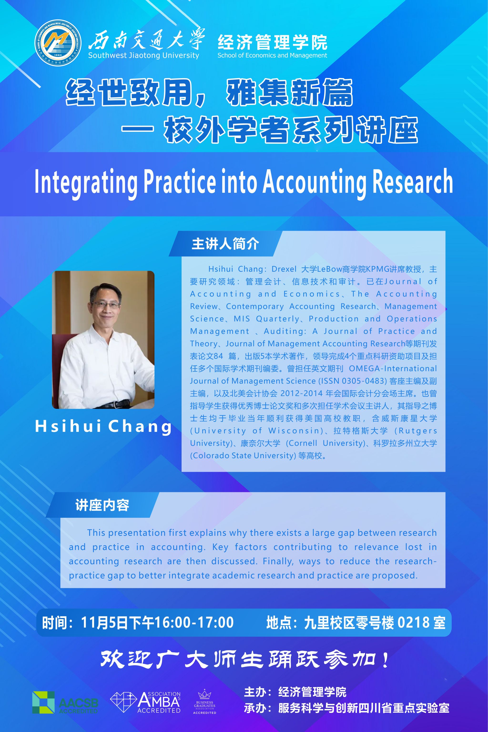 美国德雷塞尔大学 LeBow商学院张锡惠教授学术讲座