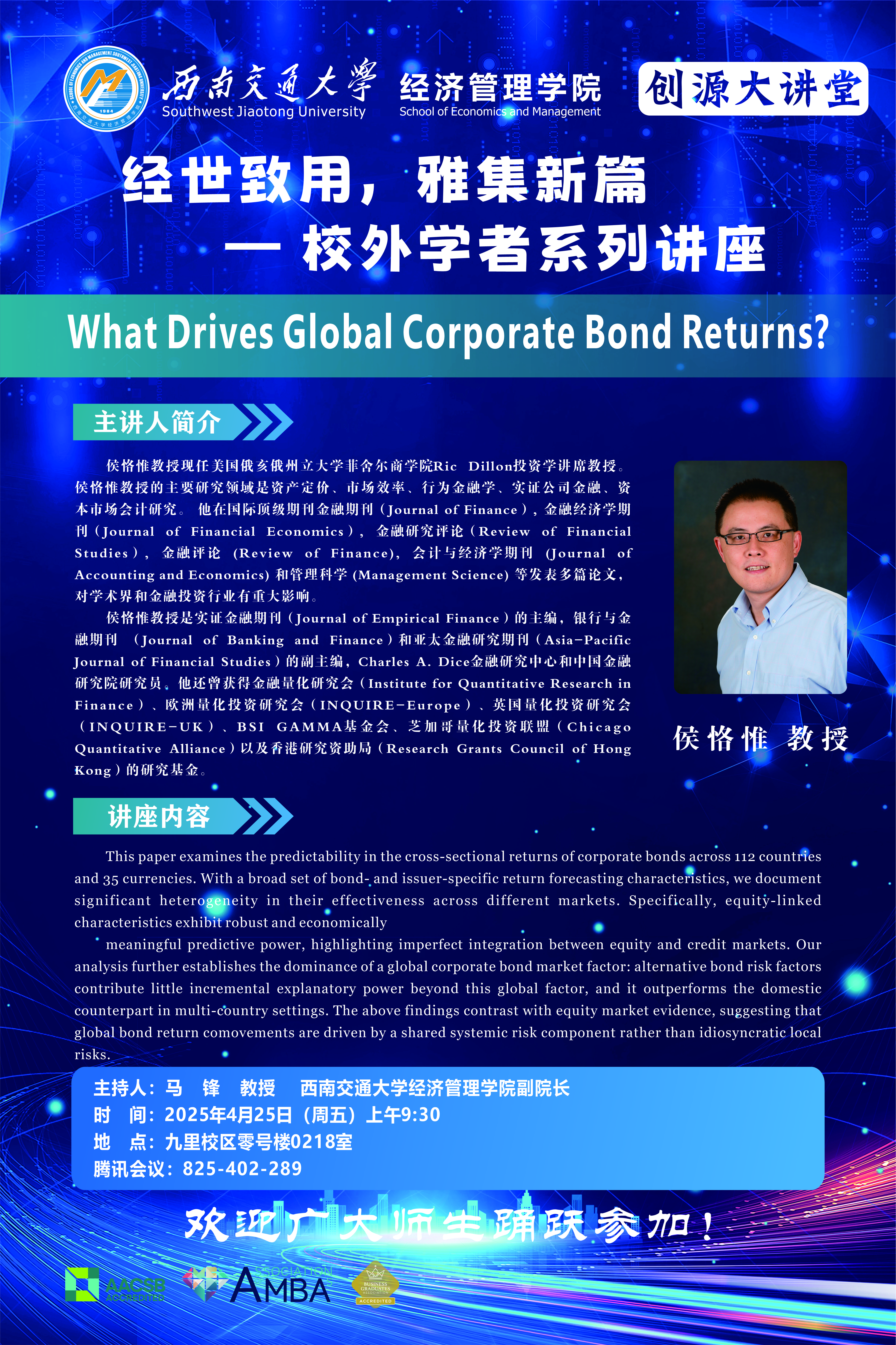 俄亥俄州立大学菲舍尔商学院侯恪惟教授学术讲座