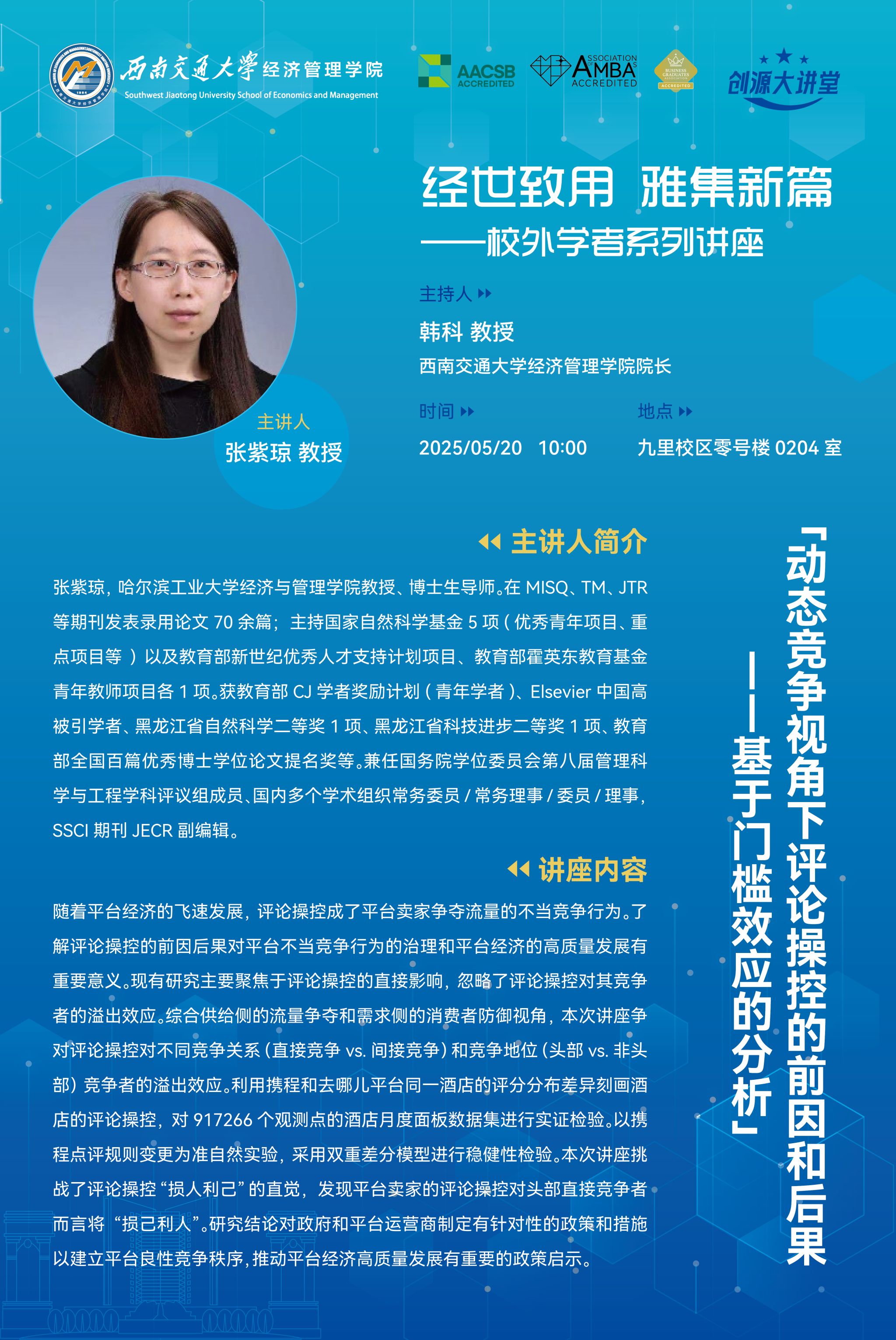 哈尔滨工业大学经济与管理学院张紫琼教授学术讲座