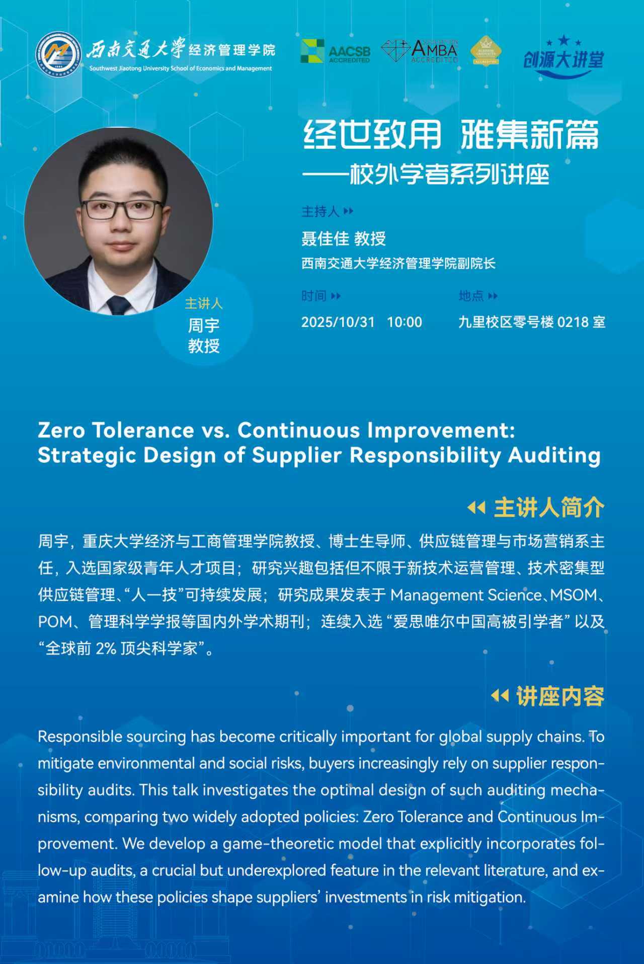 重庆大学经济与工商管理学院周宇教授学术讲座