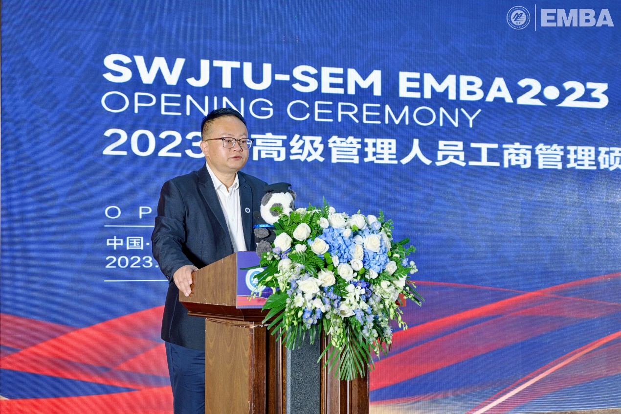 Deputy President Liu Changjun delivered a speech, extending a warm welcome and congratulations to the new students on behalf of the university. He expressed heartfelt gratitude to individuals from various sectors who have contributed to the EMBA education cause. Liu introduced the university's history, characteristics, and achievements, emphasizing the significant role and position of EMBA education in the university's development strategy. Deputy President Liu Changjun urged everyone to cultivate innovative thinking, maintain a long-term perspective, and develop a broad mindset to tackle the challenges of the times. He hoped that the new students, relying on the talent cultivation system of the school, would become cross-disciplinary and cross-industry elites, ready to set sail on their journey.