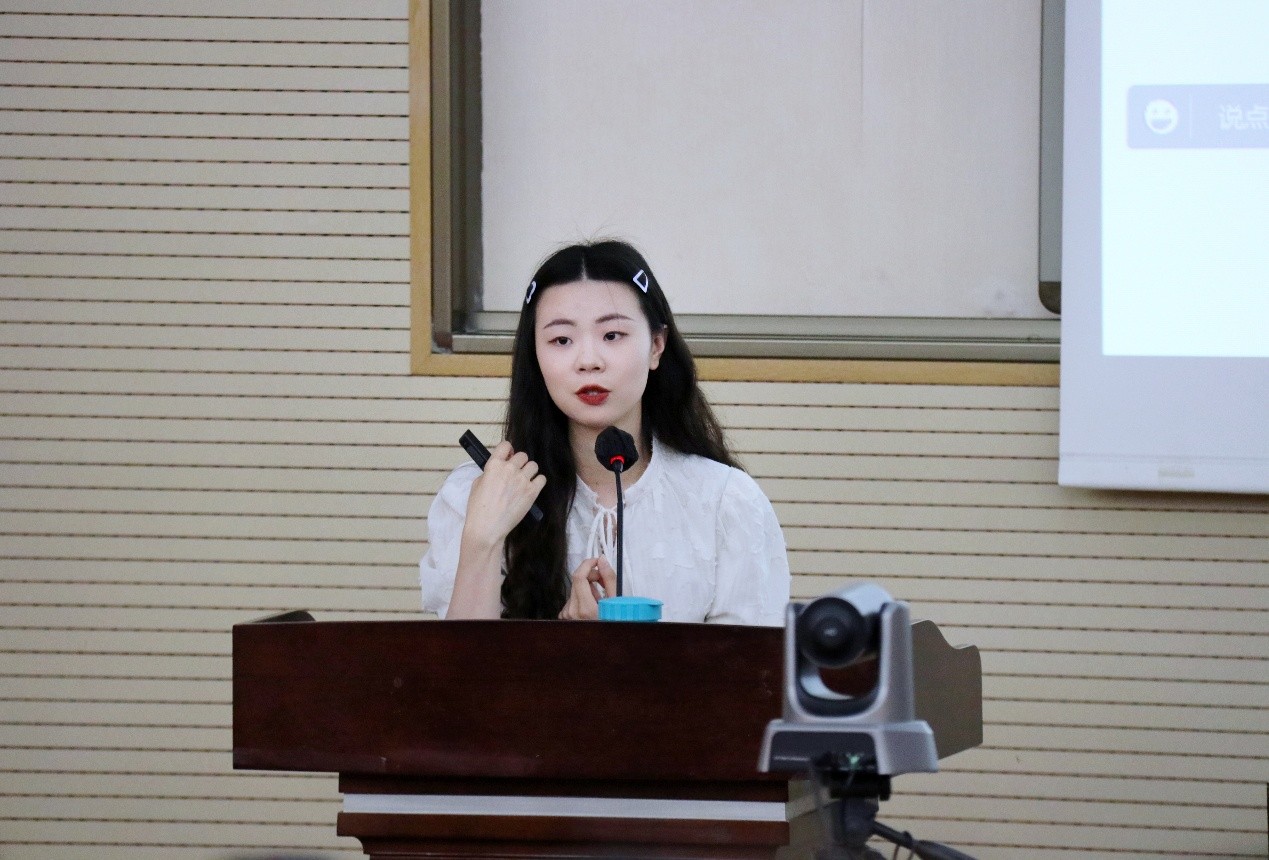 莫代玉为同学们介绍由辅导员老师们为“生涯启航”计划精心设计的标识。标识中以火车头融入交大特色,用学院院徽体现独特性,将“航”字中的“舟”设计为灯塔,寓意为同学们照亮前路,扬帆起航。