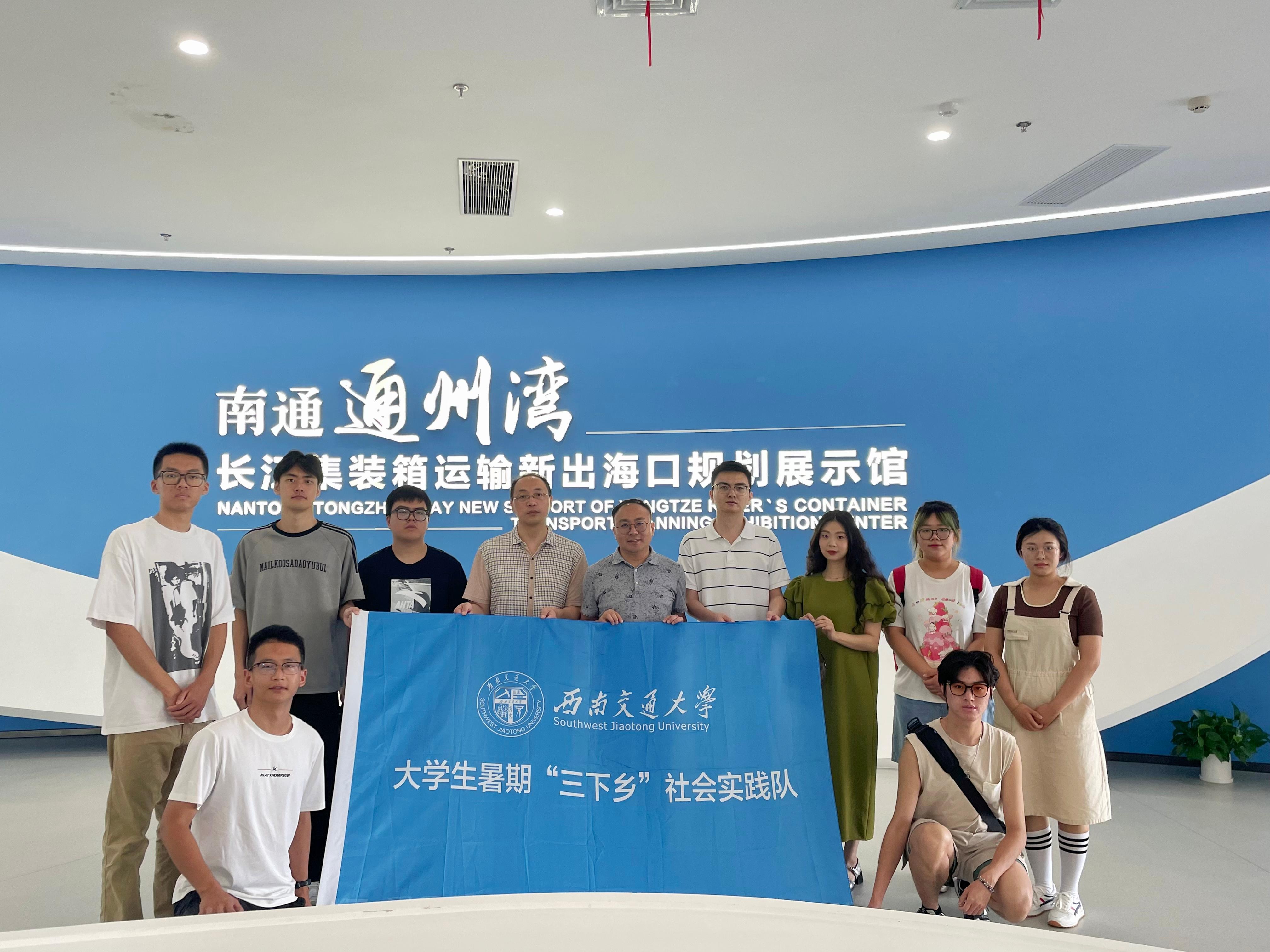8月10日上午,实践队来到通州湾长江集装箱运输新出海口规划展示馆。该展馆以图片、文字、沙盘、模型、实物、3D影片等多种方式展示了湾区建设总体规划、产业布局、集疏运体系建设情况和城市新风貌。通州湾用10年时间,充分利用地理、交通、政策等优势,发展为集高端产业园、核心商贸城和物流基地于一体的“国家战略新高地,通江通海通州湾”,令师生赞叹不已。参观后,实践队与通州湾组织人事局主要负责人进行座谈,深入了解了湾区产业发展、人才需求情况和人才引进政策。