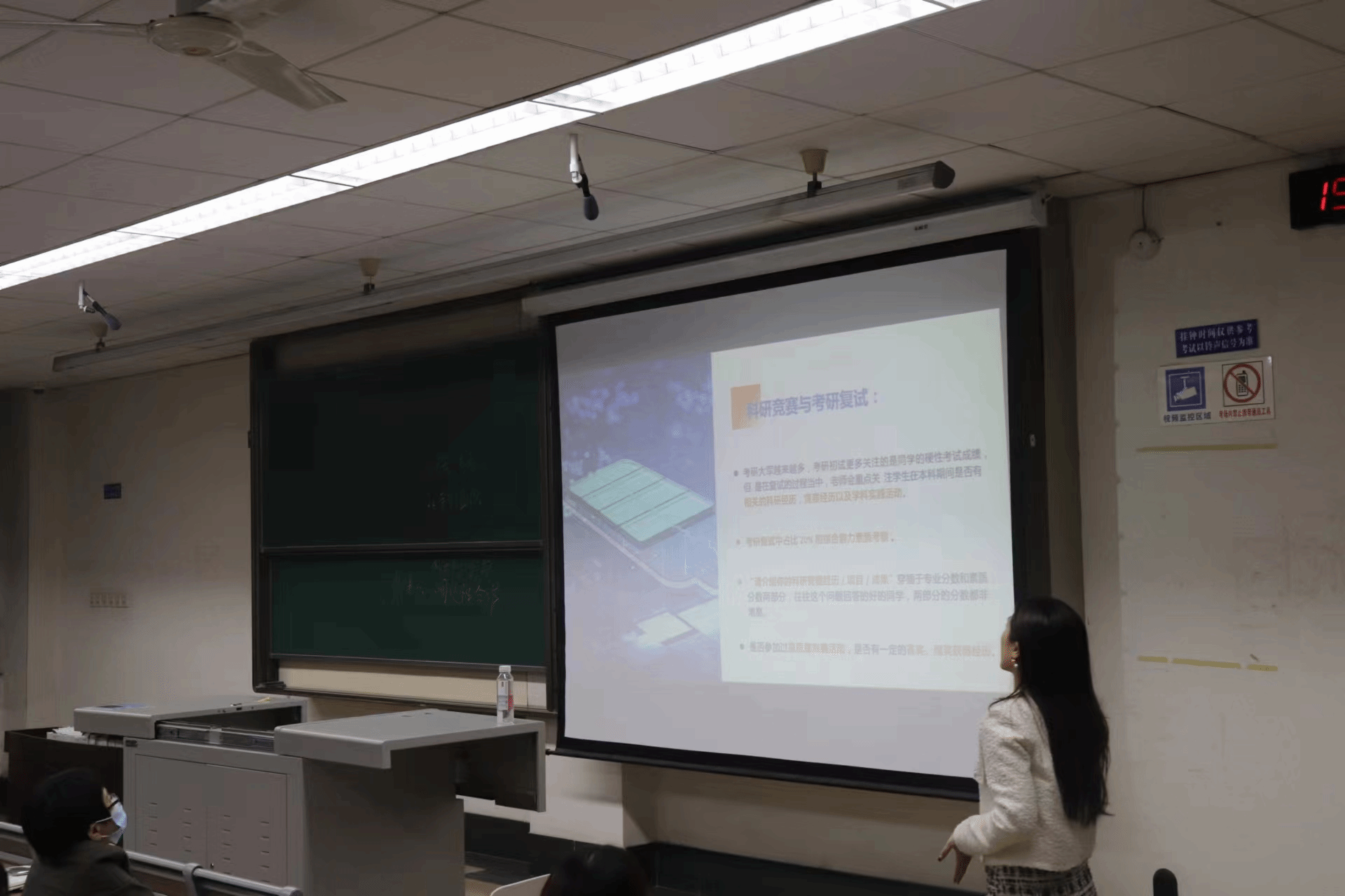 活动开始时,杨言鑫老师以如何进行个人学业规划的问题切入主题。接着,王静老师向同学们详细介绍了我校本科生保研的要求以及如何获取保研资格,让同学们意识到了获取保研资格的重要性,激发了同学们对学习的热情。