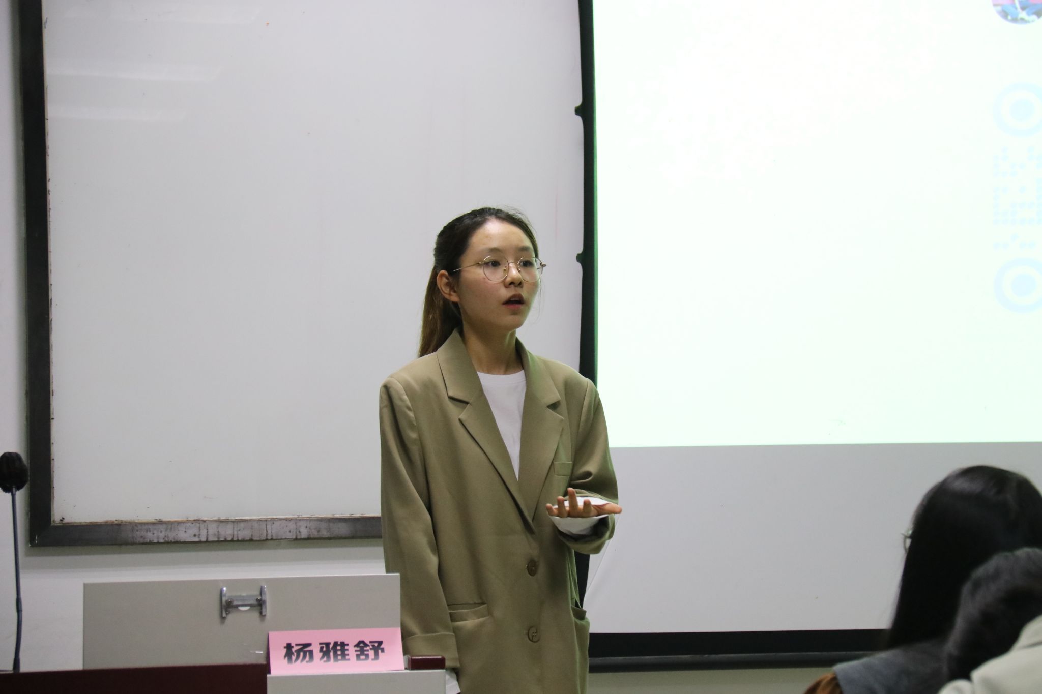 学委场主讲人杨雅舒指出班级日常建设有助于形成良好的班级学风。她表示学委是班级同学获取学校信息的重要途径,学委应该做到及时提醒同学们各科作业的上交时间,汇总各科学习资料,及时将学院的各项通知传达给班级同学,帮助班级同学更好地享受大学的学习生活。