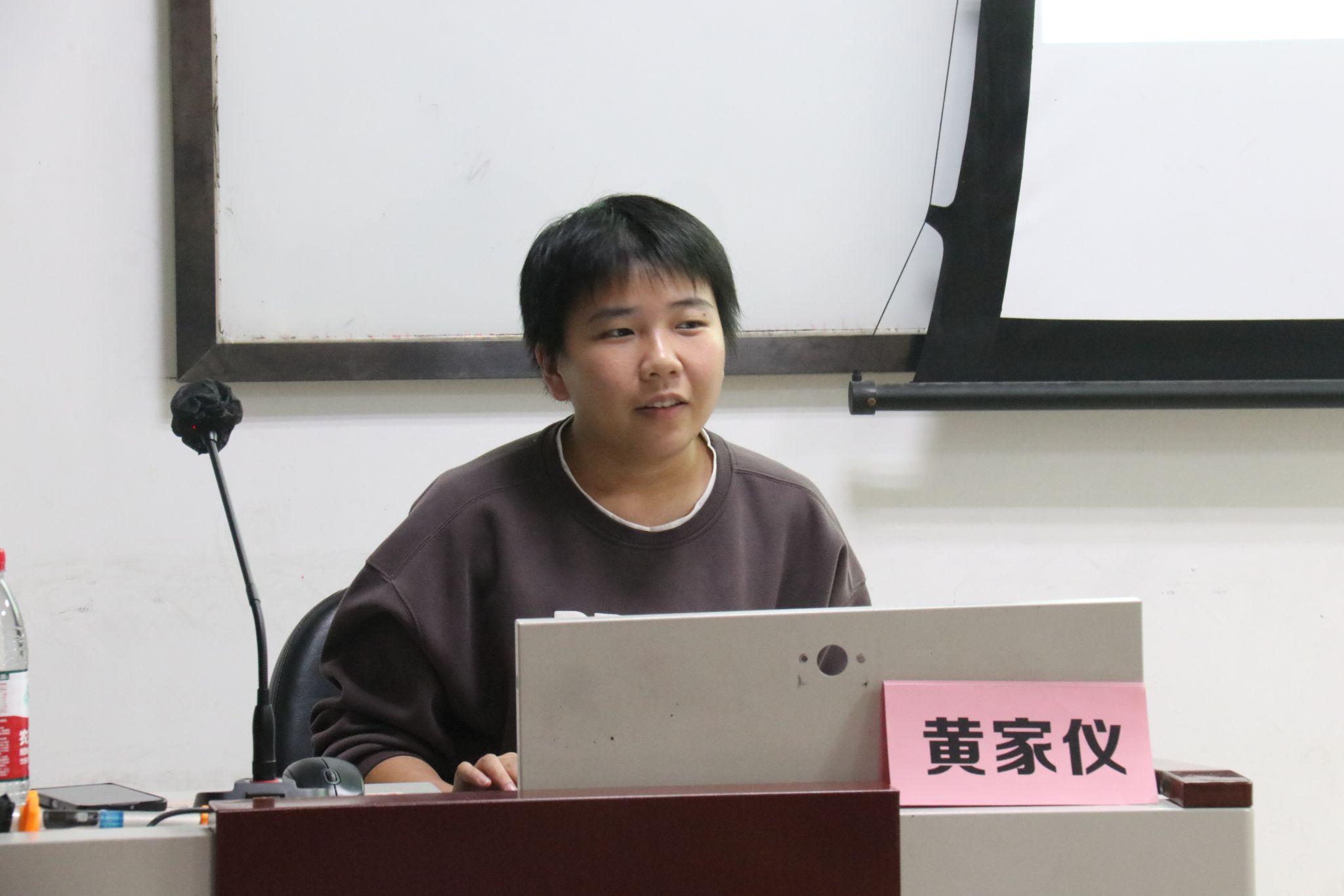 班长场主讲人黄家仪认为班委间的分工合作对于班级后续工作的顺利开展有着重要意义。她表示一个班级的班委是一个整体,每个班委都应该有强烈的集体意识、责任心和耐心,班长要明确各班委的职责分工,做好表率,以班委为突破口向班级同学扩散,班级工作才能更加顺利地开展。