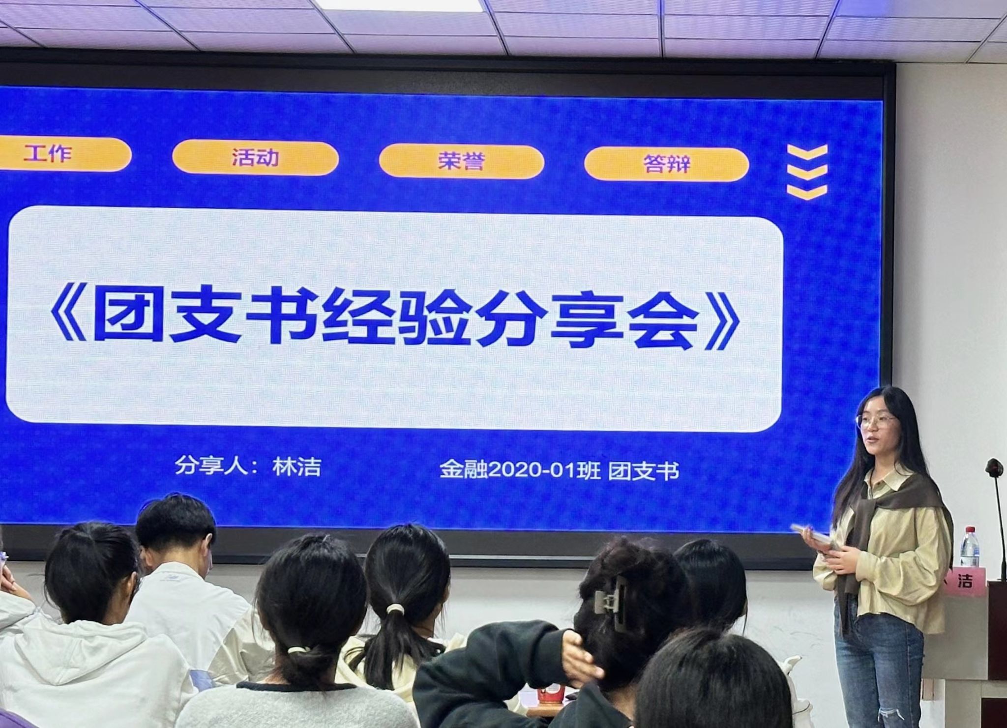 团支书场主讲人林洁从“青年大学习”、推优入党、团课开展等几个方面团支书的工作内容进行了总结,强调团支书要有责任心、要坚守原则、提升个人能力。她提到团支书是班委的中坚力量,应该主动帮助同学,积极组织班级同学开展教育实践,团结班级同学,在活动中展示班级风采。