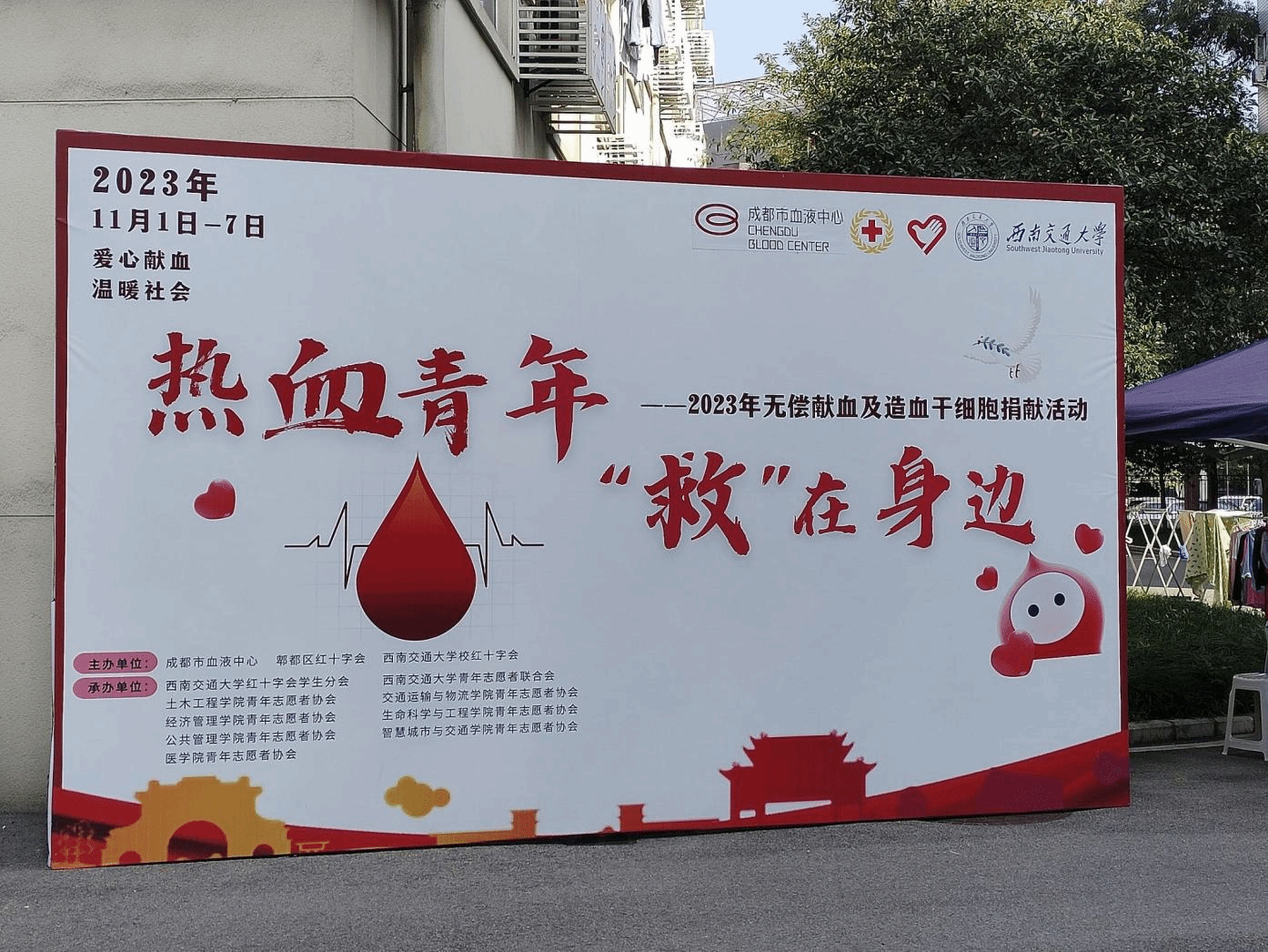 红十字会主办、各学院青年志愿者协会承办的热血青年、“救”在身边——2023年无偿献血及造血干细胞捐献活动分别在犀浦校区和九里校区顺利开展。