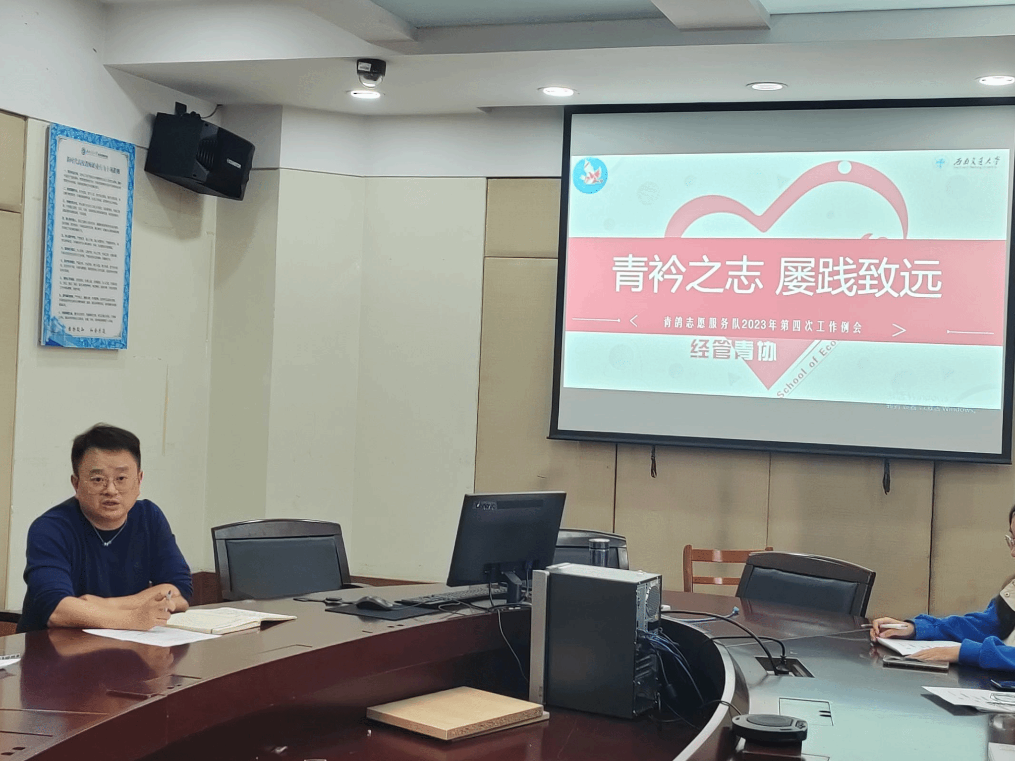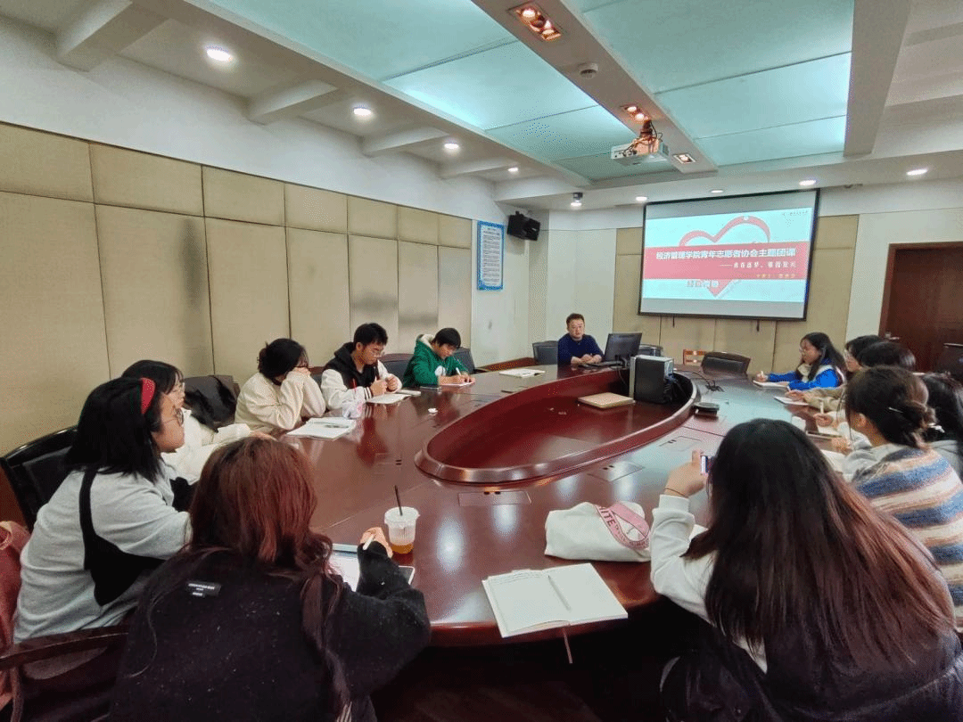 青年志愿者协会(以下简称“经管青协”)成员的综合素质,成为一名合格的青协人,2023年11月20日中午,经管青协在J0629开展了2023年第四次工作例会暨青鸽志愿服务队业务培训会。
