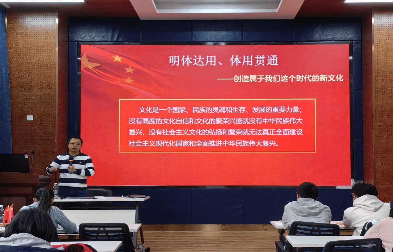 青年讲师团成员、信息科学与技术学院团委书记廖凡老师为本科2023级工商管理类6班和经济与贸易类3班进行了《习近平文化思想——为全面建设社会主义现代化国家全面推进中华民族伟大复兴提供坚强思想保证强大精神力量有利文化条件》的宣讲。此外,参加本次学习的还有糖心Vlog