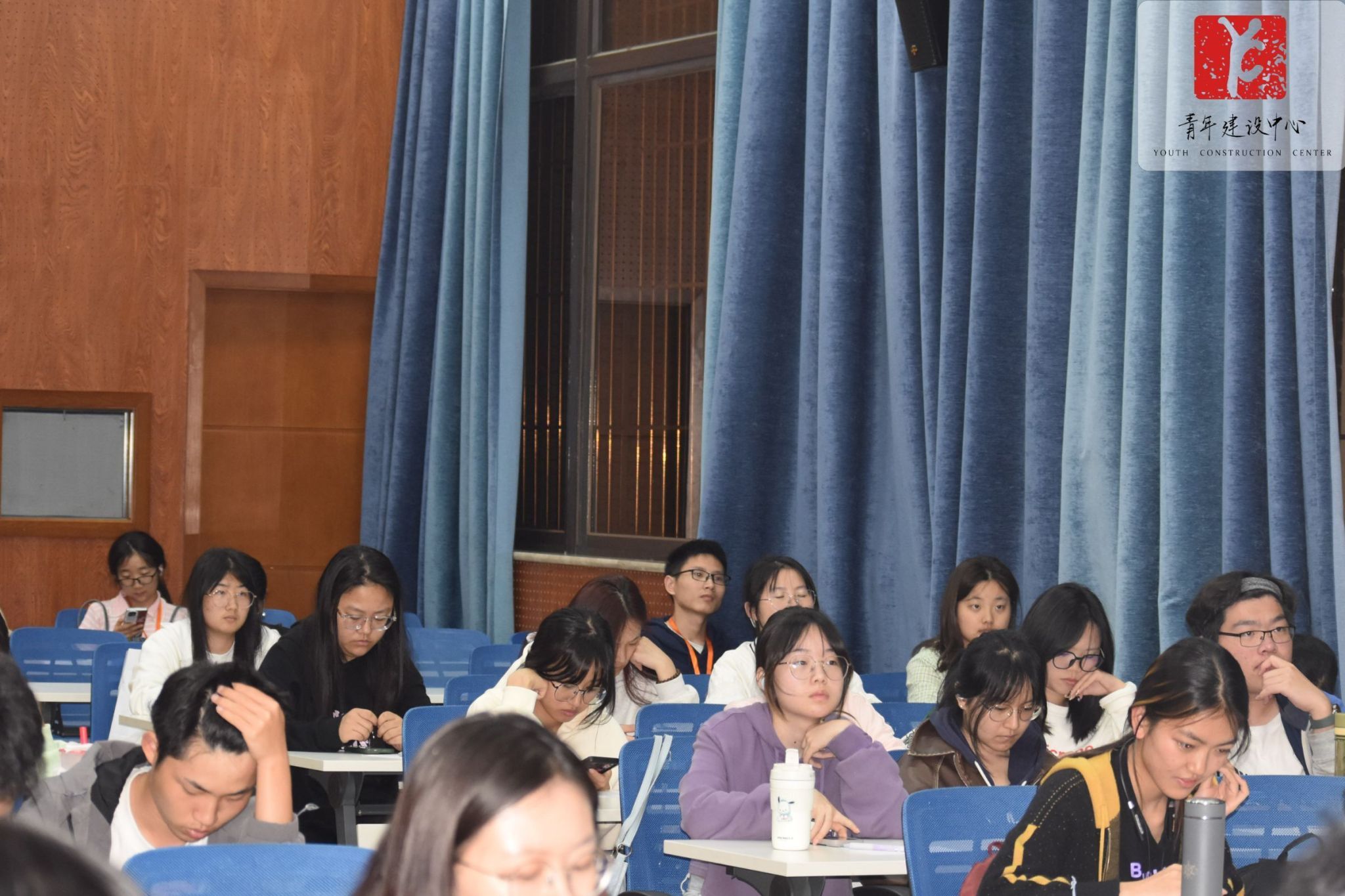 黄家仪主讲,主题为“创新扬帆竞赛海, 实践勇攀科研山”,旨在帮助团干部们了解参加竞赛的相关知识与技巧。