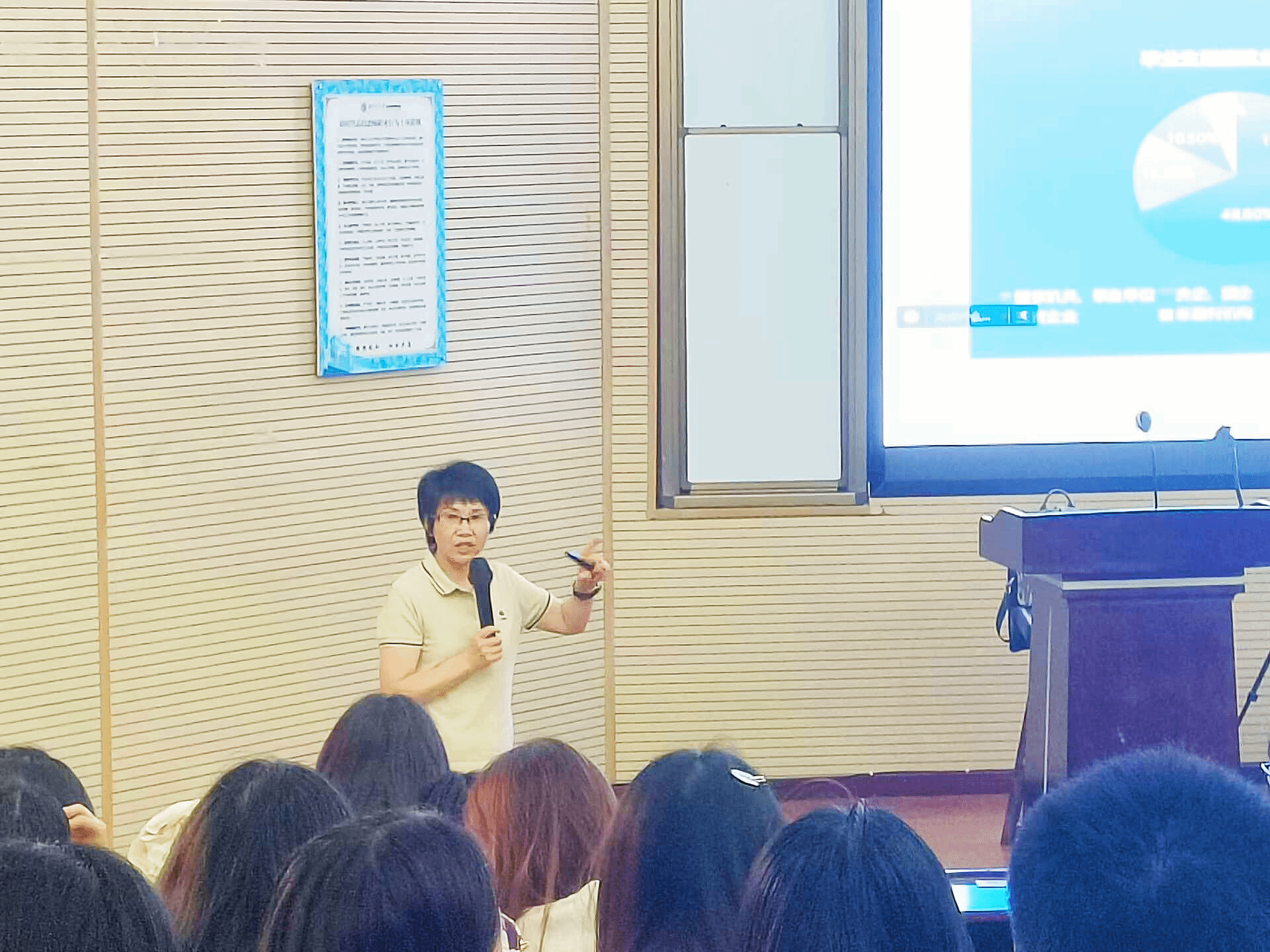 讲座伊始,王哿老师首先向学生们讲解大学生就业时间安排计划表,详细解析了各个阶段应关注的重点,从准备简历、参加招聘会到面试技巧等,为学生们提供了一个清晰的就业准备路线图。