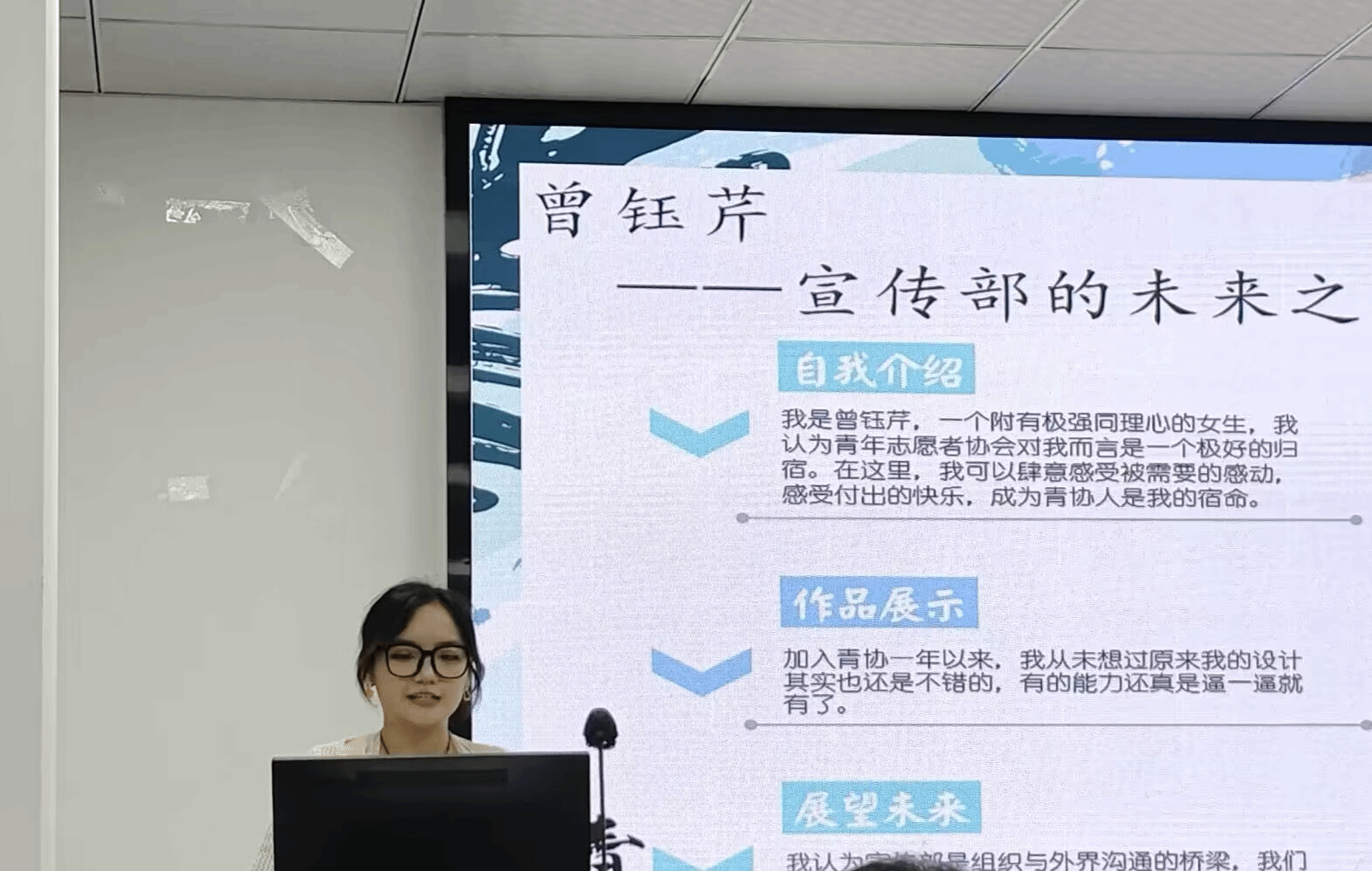 接下来,经管青协迎来了本学年的组织内部换届大会。本次会议是一次承前启后、继往开来的会议,会议旨在优中选优,为青协注入新鲜血液,期待青协能继续在志愿服务的康庄大道上开垦出属于经管青协的沃土。