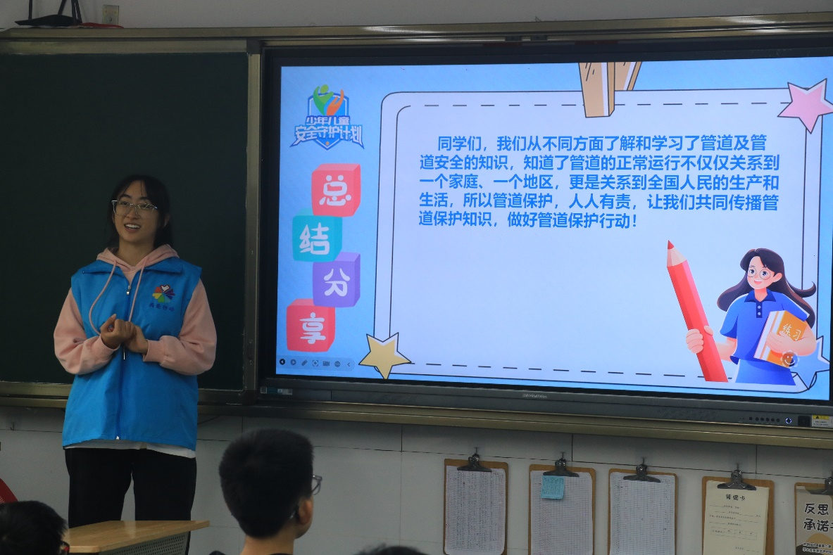 子弟小学六年级三班的教室,带来了一场生动有趣的管道保护宣传课程。此次课程内容丰富多样,覆盖了以下几个方面的知识点:“藏起来的公路”“西气东输知多少”“地下公路设施多”“管道保护有措施”“管道的内忧外患”“管道也要被保护”以及“管道泄漏会逃生”。