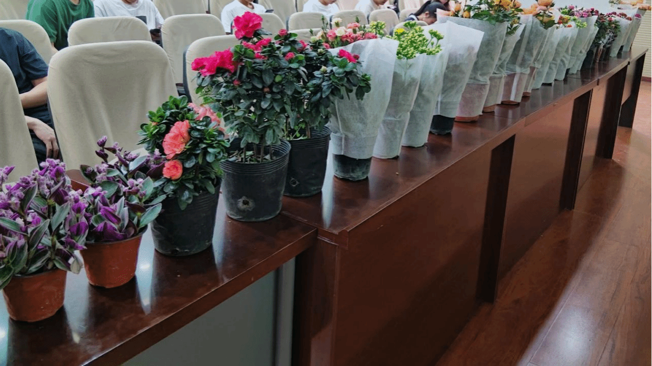 依托“墨花书香居,雅舍三香韵”五育融合项目,创新育人形式,以花为媒,将美育和劳育融入学生宿舍生活场景。2025年4月24日下午,学院在J0215教室开展了“花点时间,馨香满寝”送花入寝活动。活动特别邀请了学校后勤保障部的欧阳黎君老师,为同学们带来了一场精彩的花卉养植知识讲座,并在现场发放了多种精心挑选的花卉绿植。