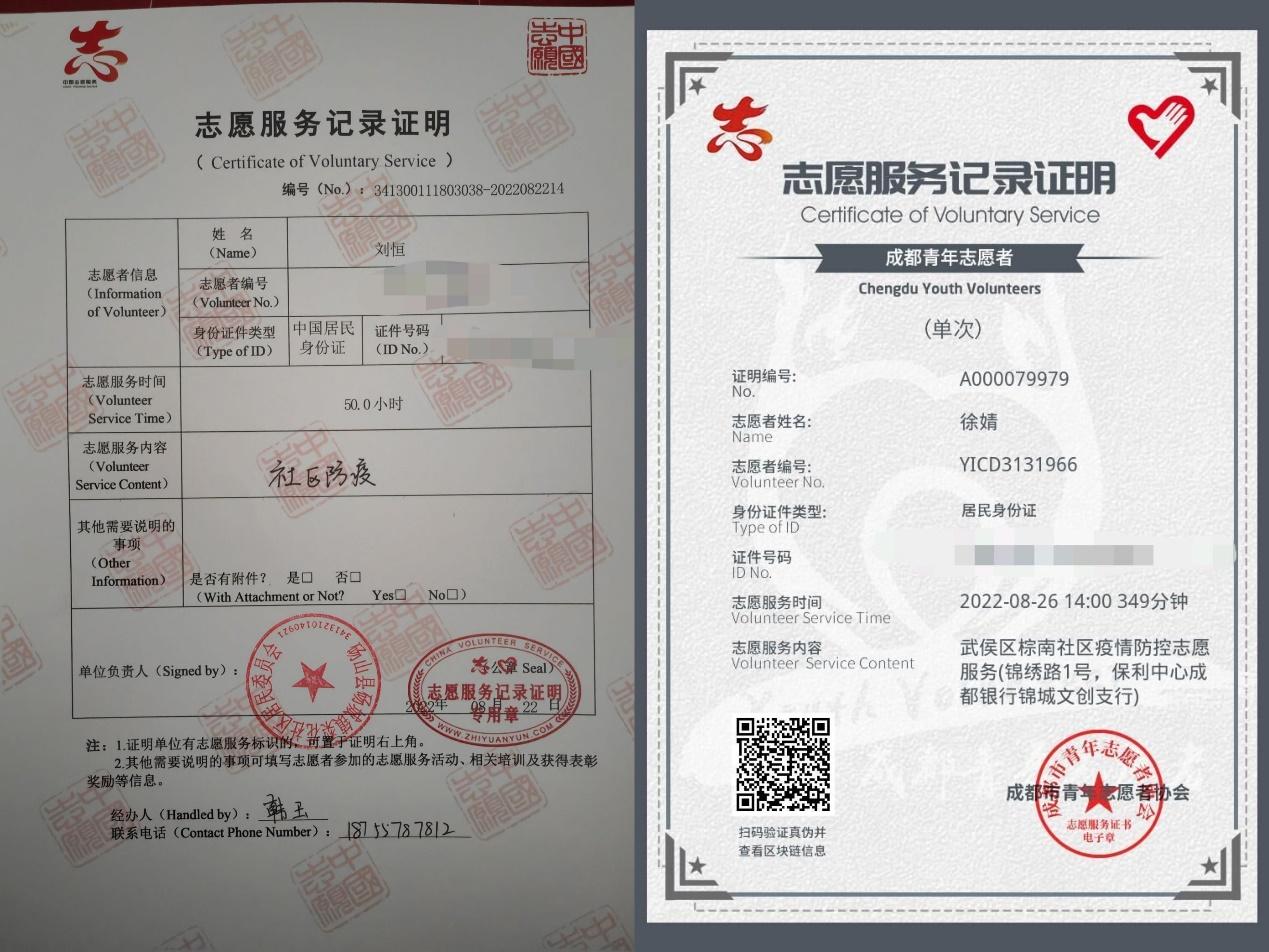 图7 抗 “疫”感谢信及志愿服务证明