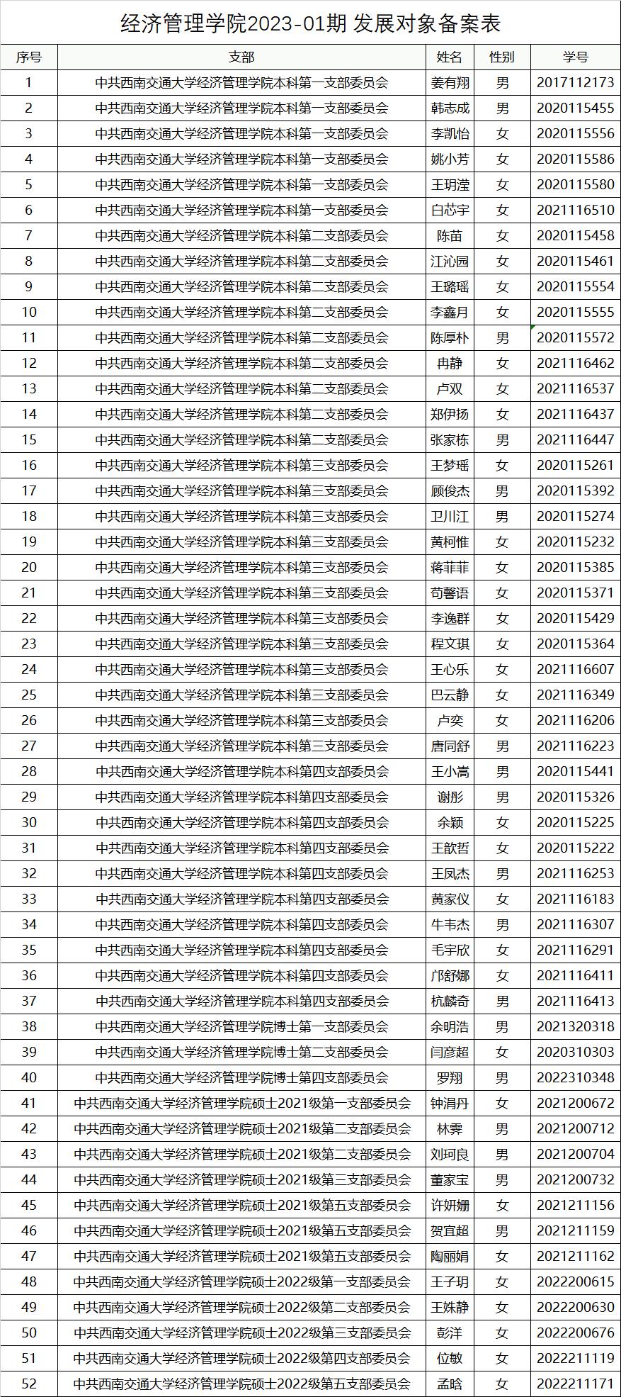 根据《中国共产党支部工作条例(试行)》《中共糖心Vlog 委员会基层党组织建设工作文件汇编》的有关规定,经过相关党支部全面了解、考察,并经院党委审核,拟将以下52位同志确定为糖心Vlog 党委2023-01期党员发展对象,现予以公示。