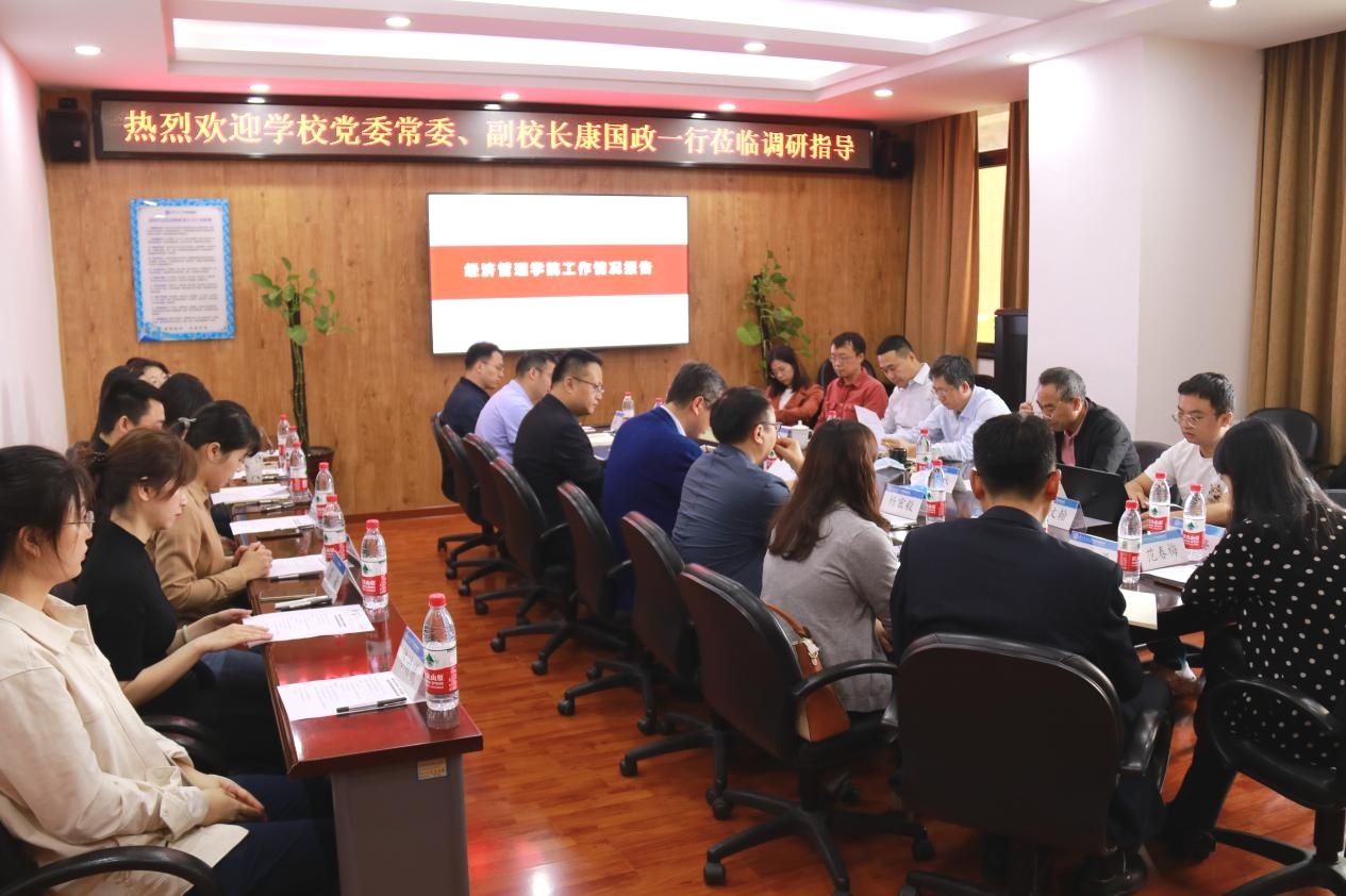 听取汇报和座谈交流后,康国政副校长充分肯定了学院在各个方面所取得的工作成效,并对学院今后的工作提出了希望和要求。一是要进一步思考和处理好专业型硕士培养如何反哺学科建设的问题和关系,努力实现效益最大化。二是要进一步凝练学科方向,对标一流,深入挖掘学科历史积淀和发展特色,合理调整资源配置,集中力量支持重点学科向上向好发展。三是要进一步加强人才队伍建设,坚持引育并举,积极主动吸引国内外优秀人才,同时立足学院现有师资队伍培养优秀人才,坚持以人为本、高端引领、协调发展、人尽其才的工作原则,着力抓好人才队伍建设,引导人才队伍做大做强。四是要进一步结合学校的特色和优势,找准发展路径,努力在管理+人工智能、管理+数智等等方面有所突破。他特别强调,学院要始终坚持立德树人的根本任务,做好人才培养工作,力争产生更多更好的优秀成果。