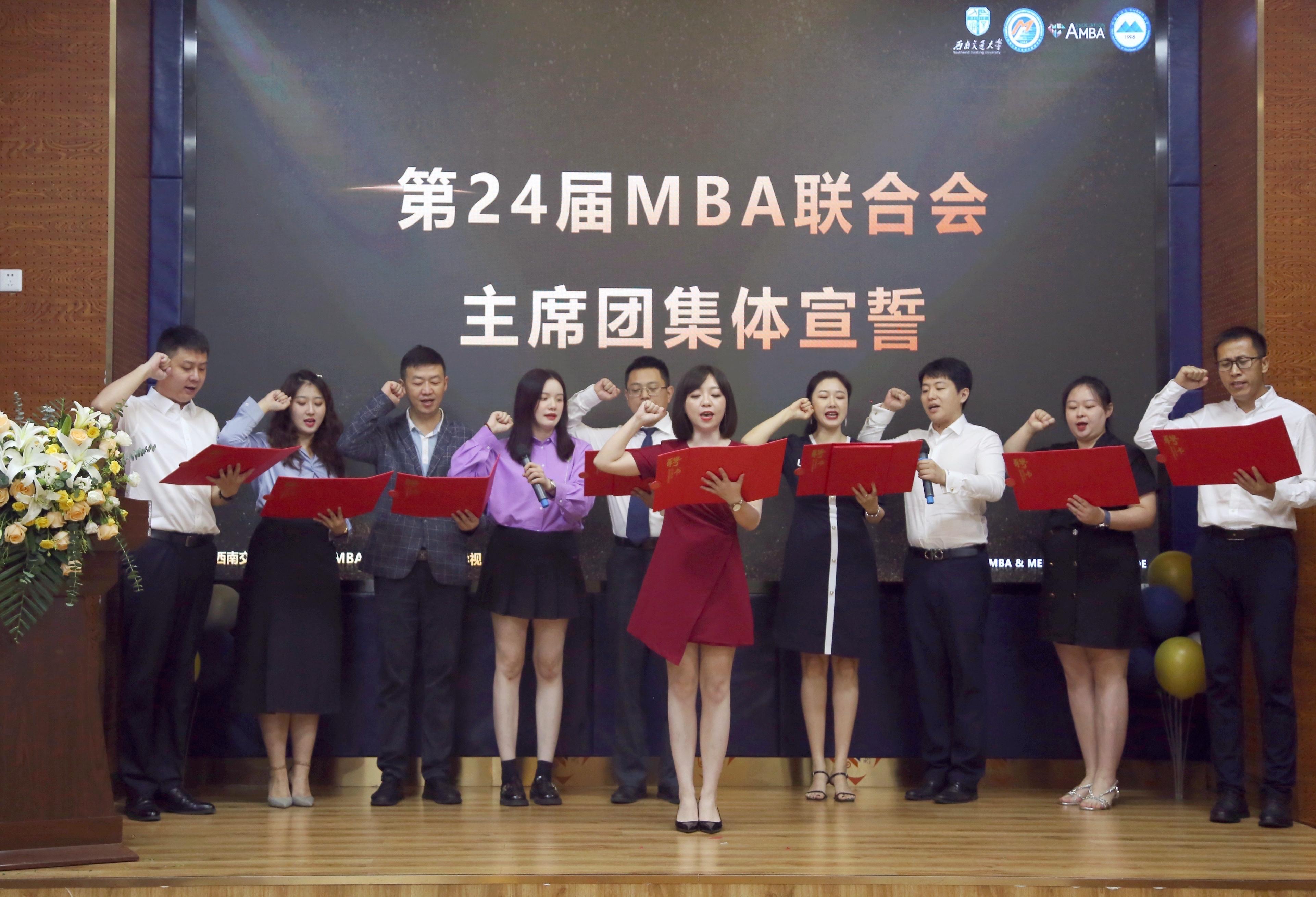 专业学位教育中心副主任何鹏和诸波为第24届MBA联合会主席团成员颁发了聘书,新一届主席团成员进行了庄严宣誓。未来的一年中,新一届MBA联合会将带领大家对内做好学生服务,对外展现交大风采,为学院建设发展作出自己的贡献。