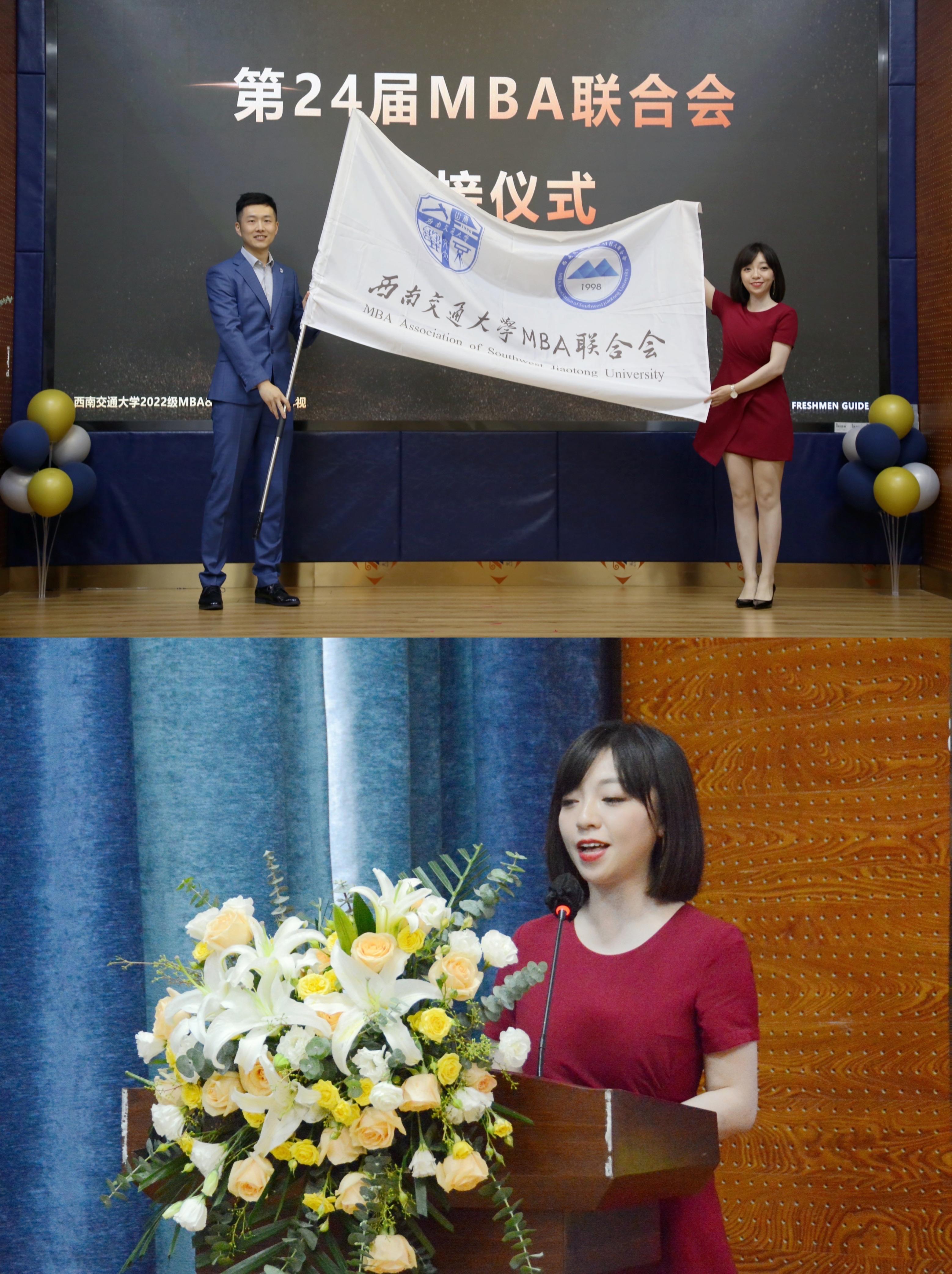 MBA联合会交接仪式环节中,第23届MBA联合会主席范雪鹏将代表责任和荣誉的会旗郑重地交接给了第24届MBA联合会主席郑雨菡。第23届MBA联合会主席范雪鹏对MBA联合会过去一年的工作进行总结,第24届MBA联合会主席郑雨菡分享了对MBA联合会的认识以及未来发展规划,并进行宣传招新。