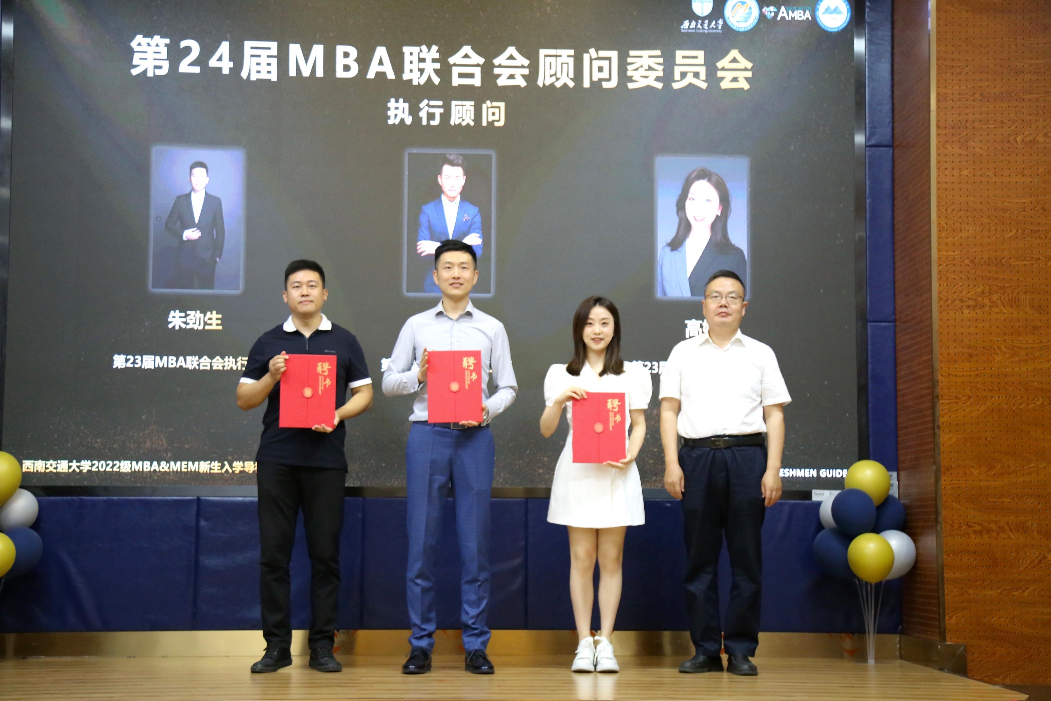 党委副书记夏显波为执行顾问范雪鹏、朱劲生、高婧颁发了聘书。作为第23届MBA联合会主席团的核心成员,他们将继续以执行顾问的身份做好传承。
