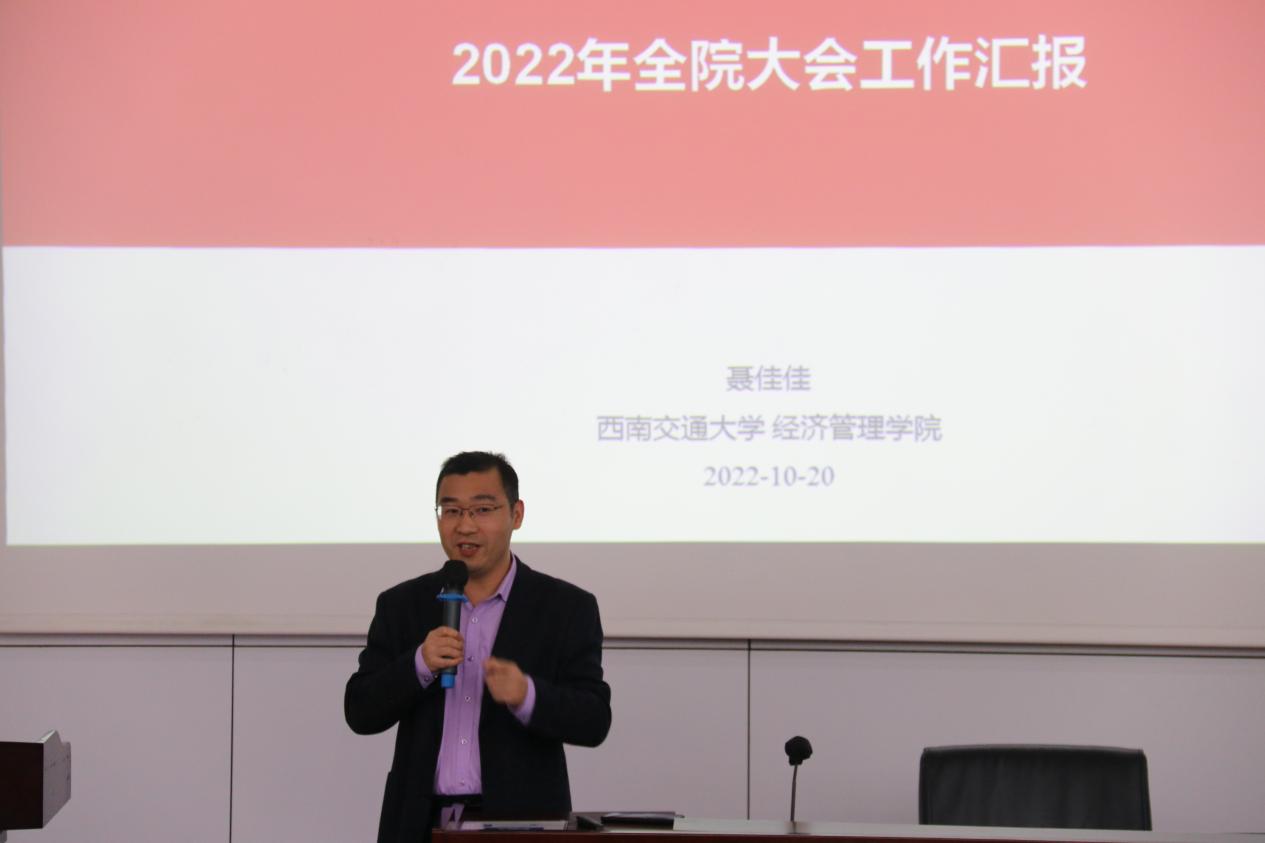 副院长聂佳佳报告了学院2022年科研开展和博士研究生培养等工作情况。他重点汇报了论文发表、国家自然科学基金和国家社会科学基金项目申报情况,并提出学院促进科研激励的一些设想,学院将组织开展一系列科研活动助力老师们积极申请、申报各类科研项目,力争重点突破。