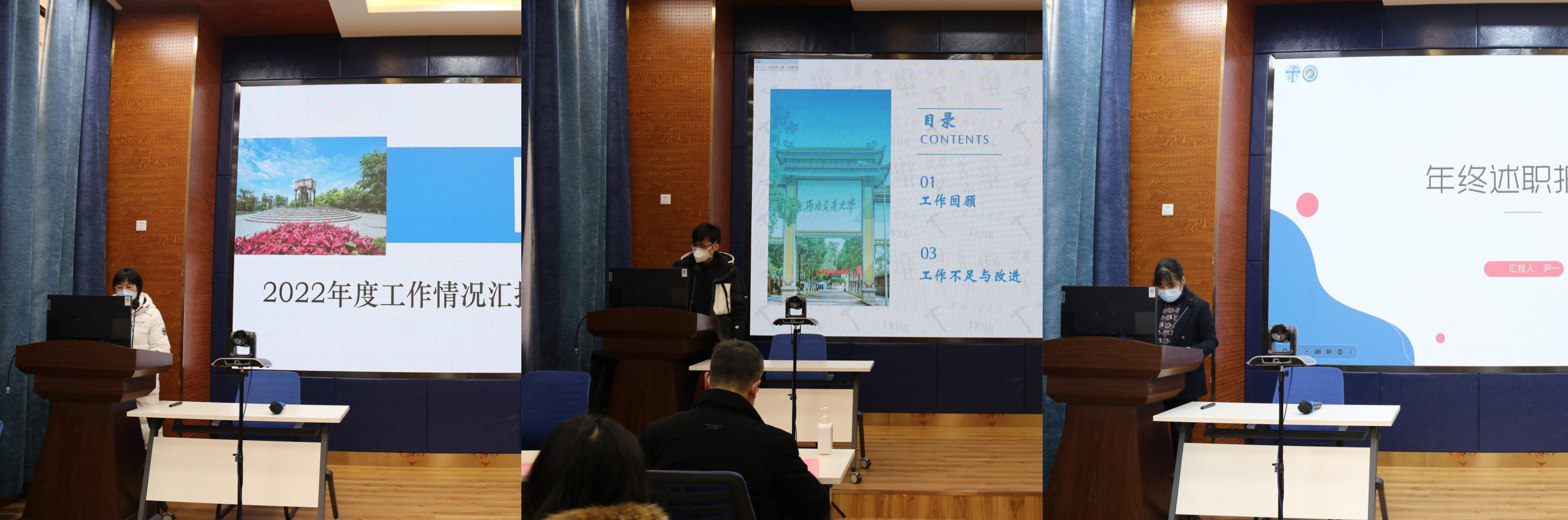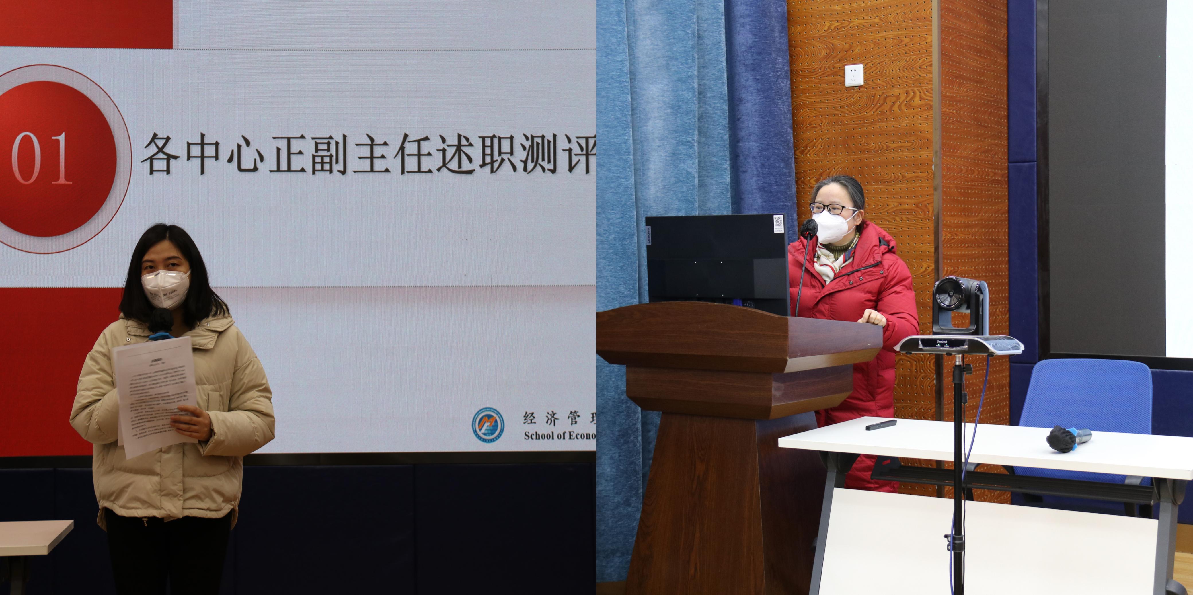 会议第一阶段,由各中心正副主任进行述职。学院研究生教育中心、国际认证中心、实验中心、本科教育中心、教育培训与国际合作中心、国内合作与校友事务中心、专业学位教育中心等7个部门的正副负责人对本年度的主要工作、亮点与成绩、不足与改进和未来规划进行了陈述。