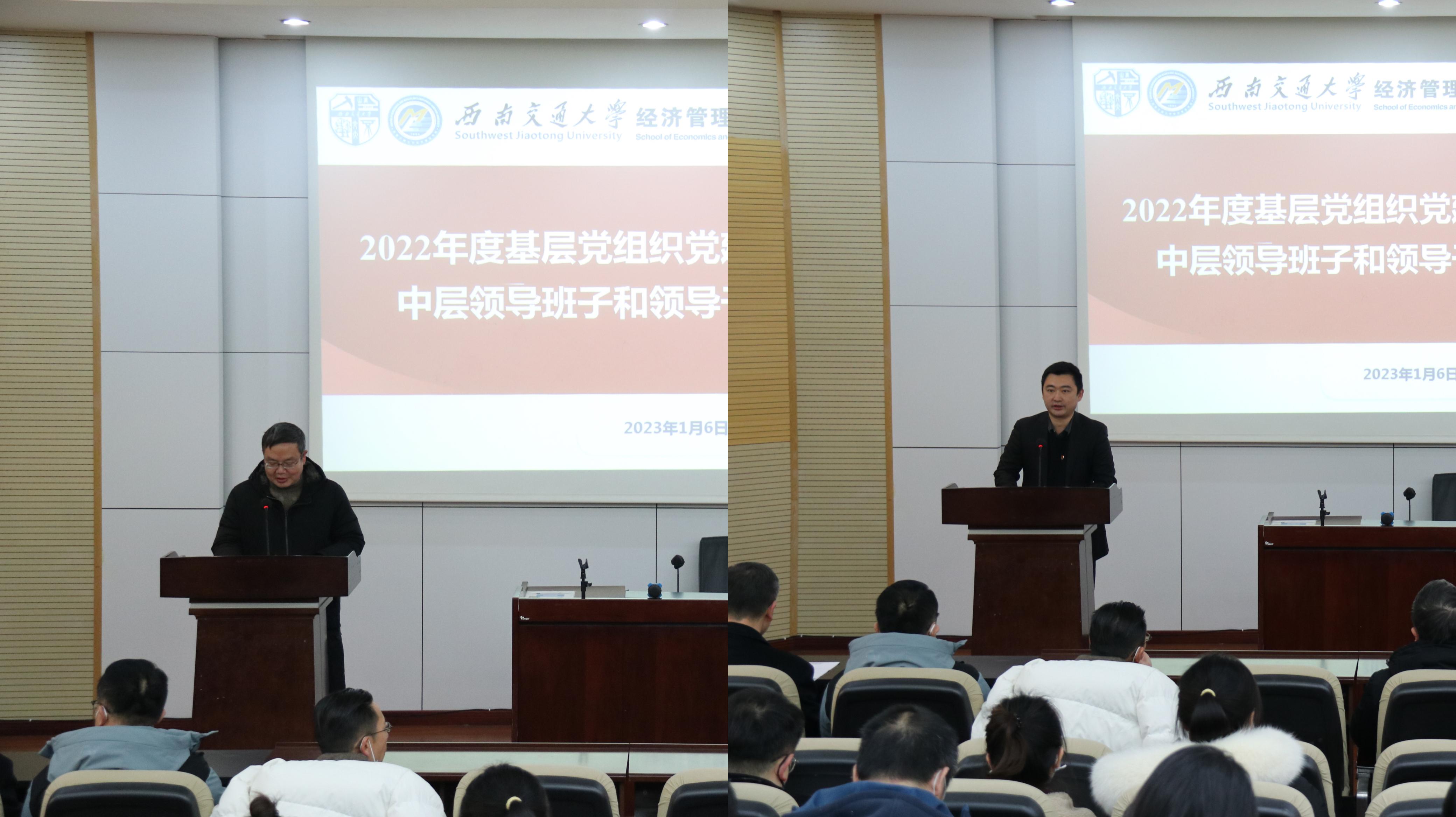 在党建满意度测评环节,王斌代表学院党委进行了述职。他从持续推进机制制度建设,着力推进“规范引领”工程;强化师生思想政治教育,着力推进“思政铸魂”工程;不断增强组织建设与保障,着力推进“活力建设”工程;坚持树典型作表率,着力推进“榜样示范”工程;强化教育制度监督,着力推进“从严治党”工程等五个方面,对学院2022年度的党建工作进行了汇报,并谈到学院党委在思想武装、领导班子建设、党建工作创新、党建与中心工作融合度这四个方面存在的问题及其原因,在此基础上提出了下一步的工作打算:一是狠抓师生的思想政治教育和理论武装;二是狠抓领导班子和干部队伍建设;三是狠抓基层党组织建设和党员的教育管理;四是狠抓党建工作与中心工作的深度融合;五是狠抓全面从严治党。