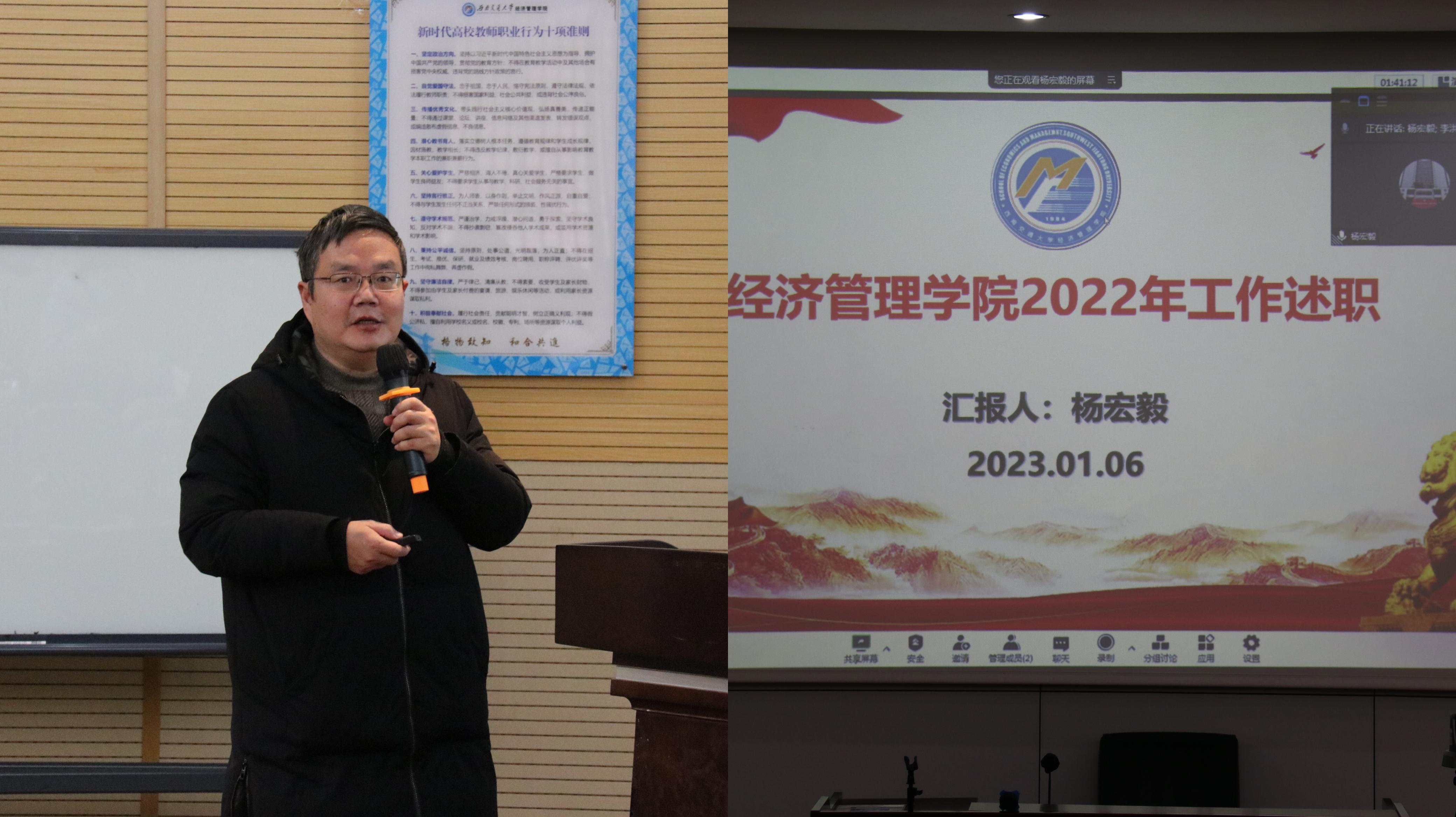 学院院长代表学院行政班子,从学科建设、科学研究、教师队伍建设、事业发展经费和人员经费收支等方面进行了述职报告。