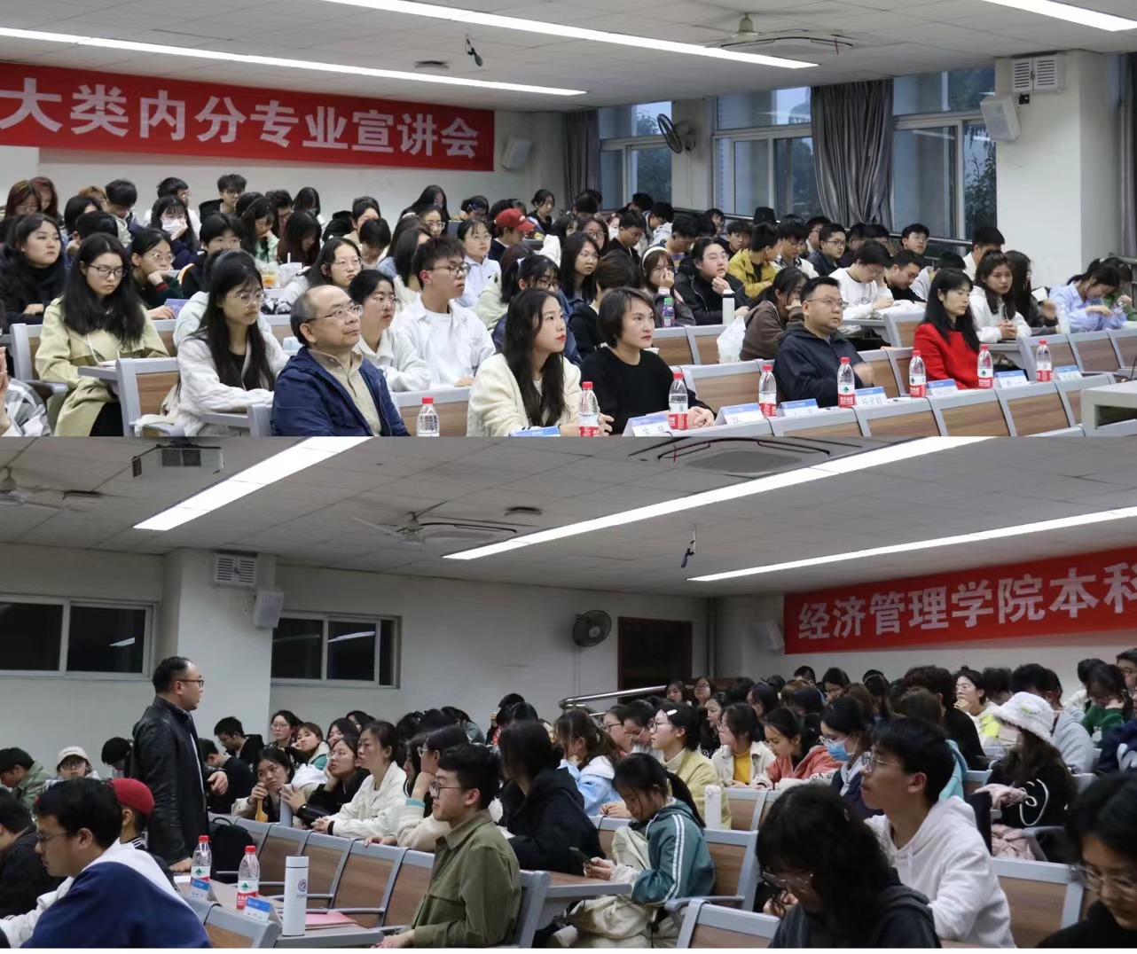 2022级本科生大类内分专业宣讲会在九里校区4号教学楼J4310、J4318、J4319教室进行。学院党委副书记杨宏毅,经济学系专业负责人窦祥胜、副系主任陈有真、优秀青年教师代表郭丽娟,金融学系副系主任郭姝辛,信息管理与信息系统专业负责人官振中,工程管理系副系主任陆绍凯,工商管理专业负责人范春梅,会计学系优秀青年教师代表刘雨柔,学生工作组辅导员张媛媛、薄慧、王子琦以及本科教育中心副主任尹一出席了会议。会议由本科教育中心漆敏主持。