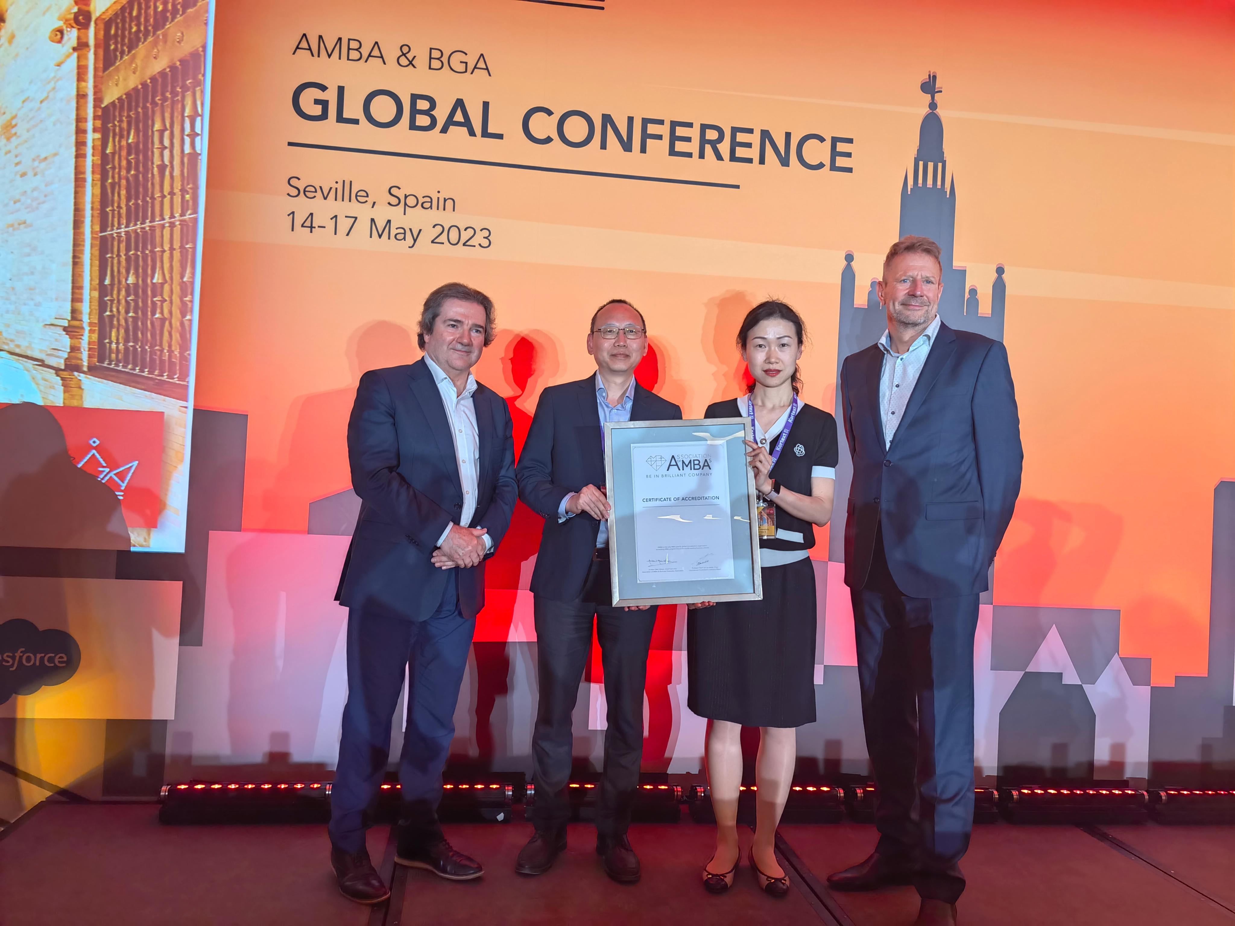 本次会议中,AMBA&BGA2019年以来获得认证和再认证的商学院正式颁发了证书。我院于2019年获得为期五年的AMBA再认证,并将于2024年迎来第三次AMBA再认证。此次李良和王一帆作为学院代表领取了再认证证书,与AMBA&BGA主席、CEO、认证专家等核心成员进行了面对面会晤和积极交流,了解了MBA项目发展重点与趋势及AMBA认证最新标准,为学院AMBA再认证工作及MBA项目未来发展汲取了丰厚经验。同时,学院在会议中展示学院特色并积极探索国际交流合作机会,为提高学院国际影响力,与其他国际高等商学院达成合作打下良好基础。