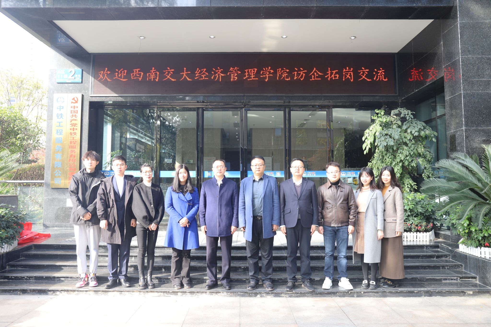 党委书记郭强带队一行八人访企拓岗小组前往中铁工程服务有限公司(以下简称中铁工服)开展访企拓岗专项活动。