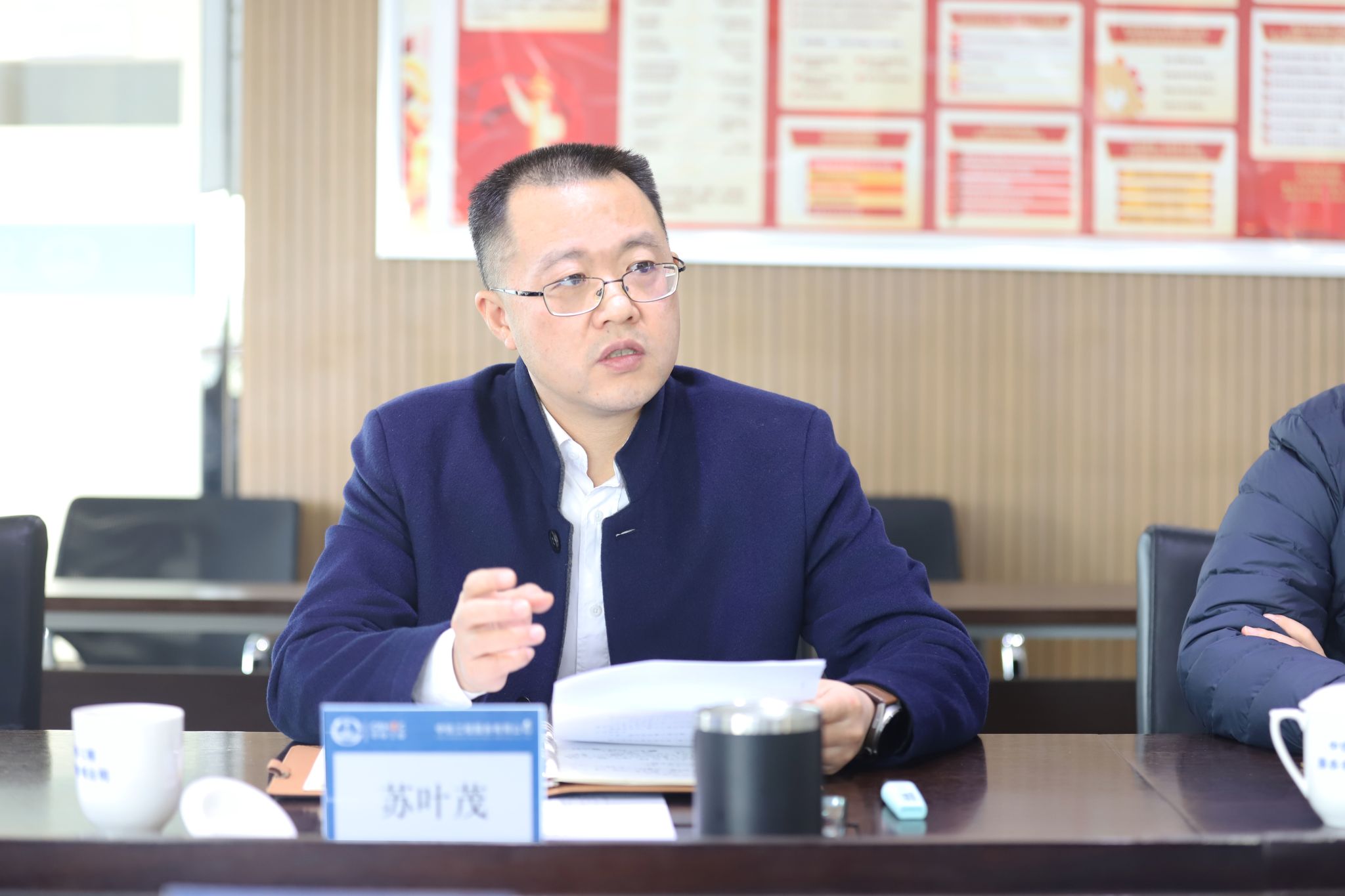 一行人员进行热情接待并组织了座谈交流。在座谈交流开始环节,中铁工服党委书记苏叶茂就参会人员做相关介绍,而后就中铁工服的发展历程和前景、业务范围、人才需求、培养机制、社会荣誉等方面做了详细说明介绍。值得一提的是,苏总作为交大的本科校友,经管学院MBA院友,也回顾了在校学习、企业工作的情况,并深切表达了对母校和老师的感恩之情。