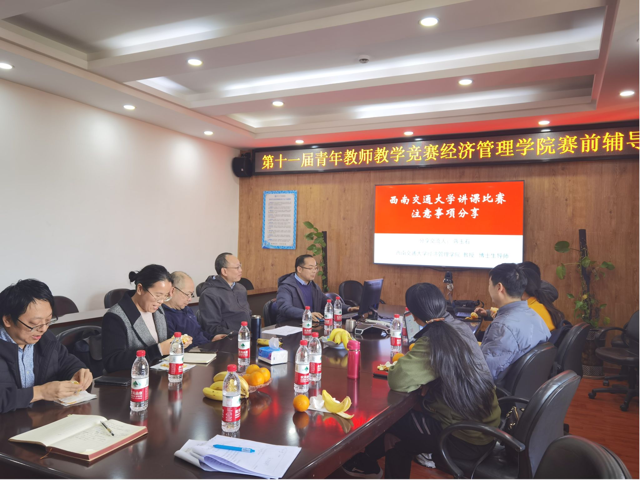 学校复赛前夕,学院于11月6日特别邀请我院往届获奖教师、教学经验丰富的专家官振中、刘盾、蒋玉石、李海波、戴杨老师在学院0607会议室举办赛前辅导会,专家们结合自身经验对参赛教师的教学设计、课件制作、授课艺术等方面进行了精心的指导。