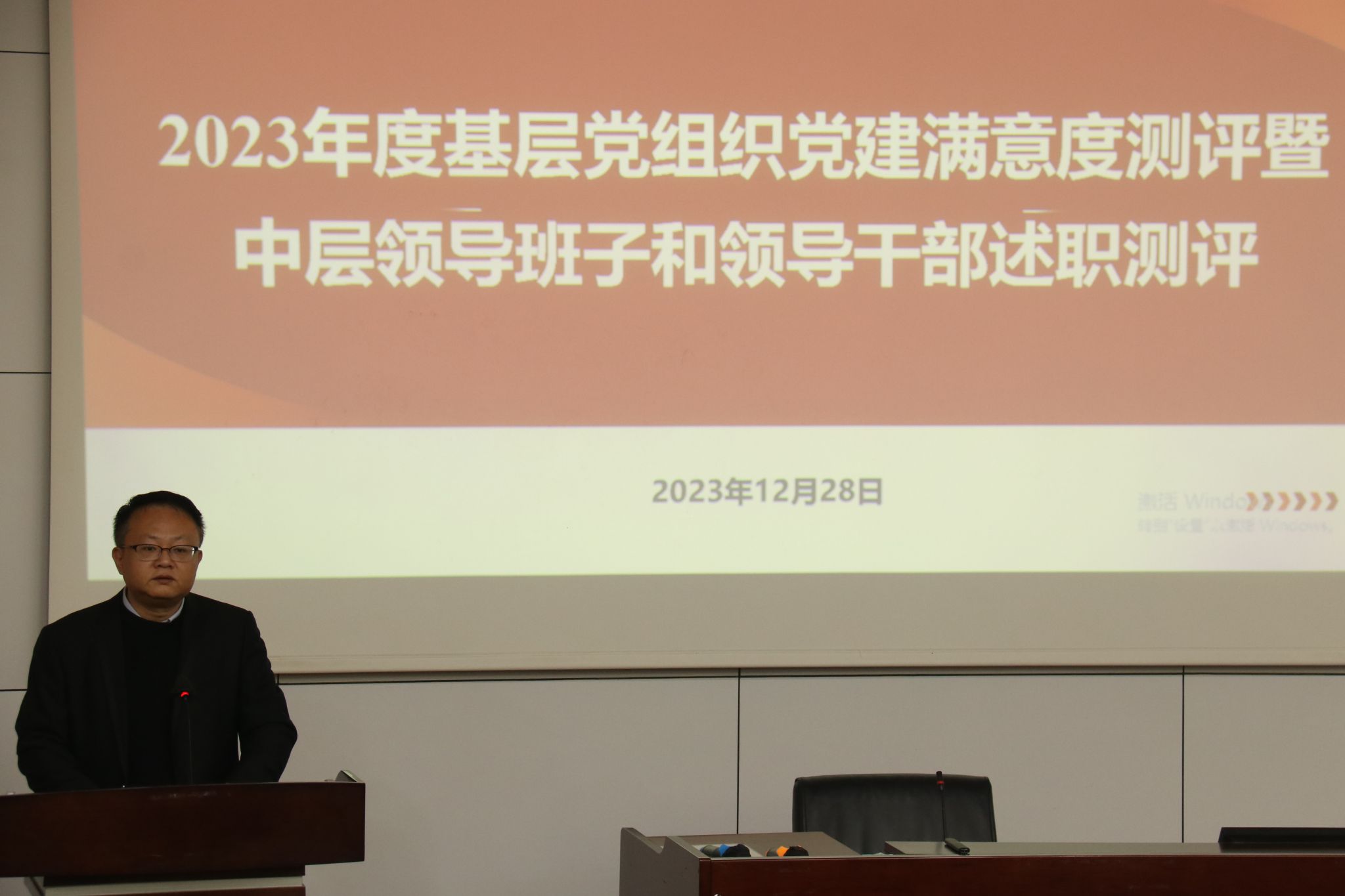 2023年度党建满意度测评暨中层领导班子和领导干部述职测评大会在九里校区0215教室召开。学院党政领导班子全体成员,学院教职工和学生党员代表参加测评,会议由学院党委书记郭强主持。