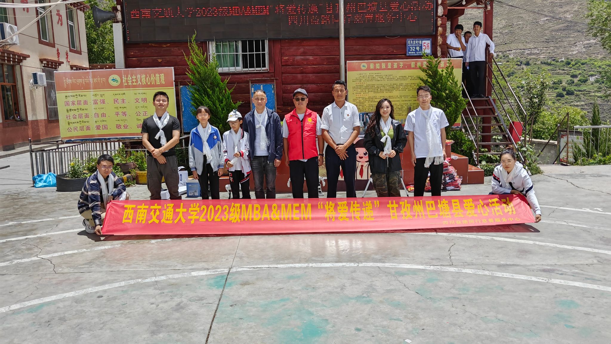 2023级MBA、MEM学子与四川益路同行慈善服务中心协作,共同举办主题为“将爱传递”的贫困山区小学扶贫社会实践活动。