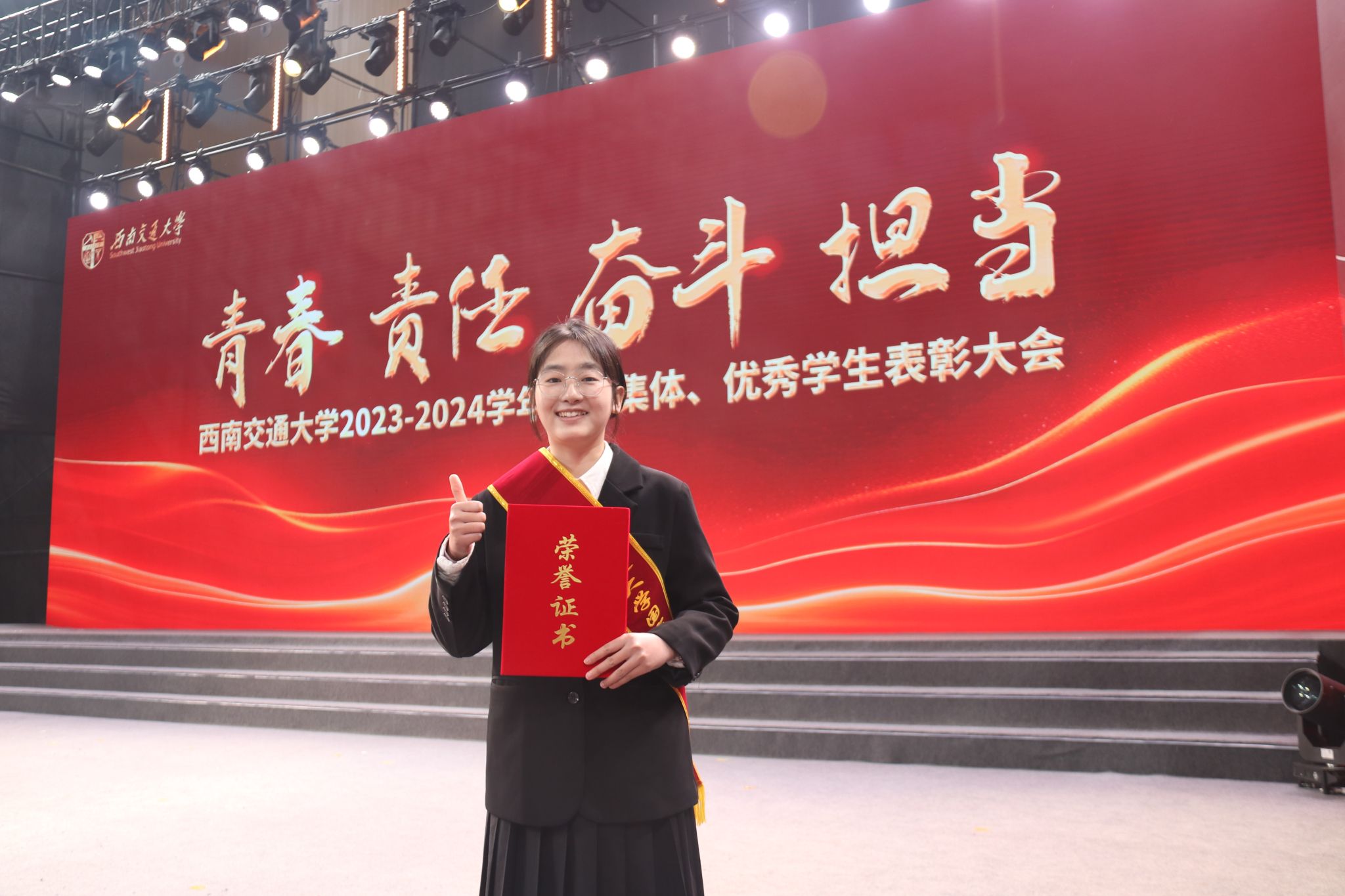 2021级本科生黄雅洁作为国家奖学金获奖代表接受表彰。刻苦是他们身上凸显出的力量,优秀是他们身上折射的符号,他们用热情,书写青春奋斗的诗篇,用榜样精神引领交大学子接续奋斗,展现了糖心Vlog