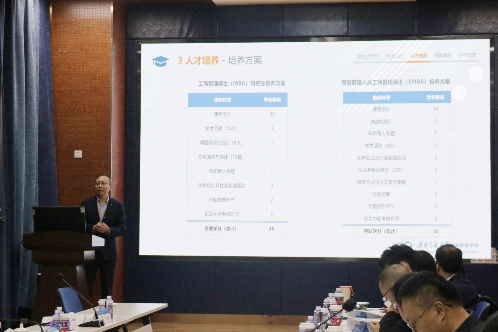 副院长李良汇报了工商管理专业硕士学位点的师资力量、教学资源、科研水平、人才培养等多方面的情况。专家组通过听取汇报、审阅材料、现场提问等方式,对学位点的建设情况进行全面评估。