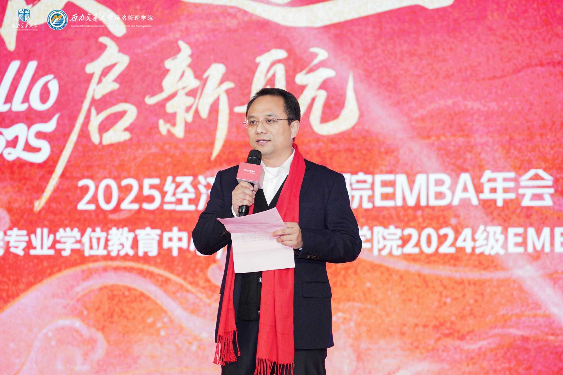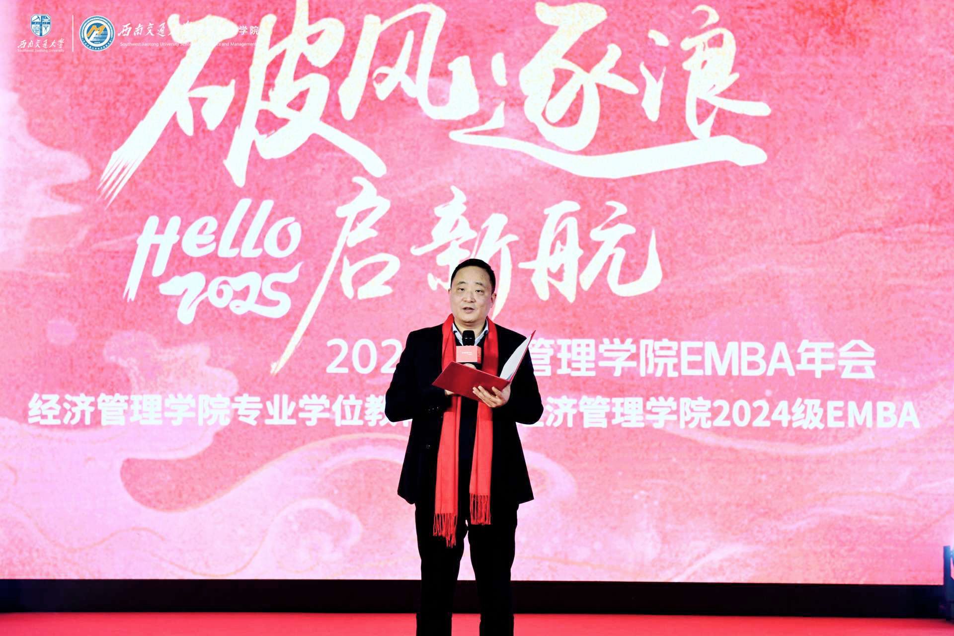 2025“破风·逐浪·启新航”EMBA年会在成都隆重举行,学校党委副书记高平平、学校职能部处相关领导以及学院党政领导班子、师生及校友代表齐聚一堂,共襄盛会。