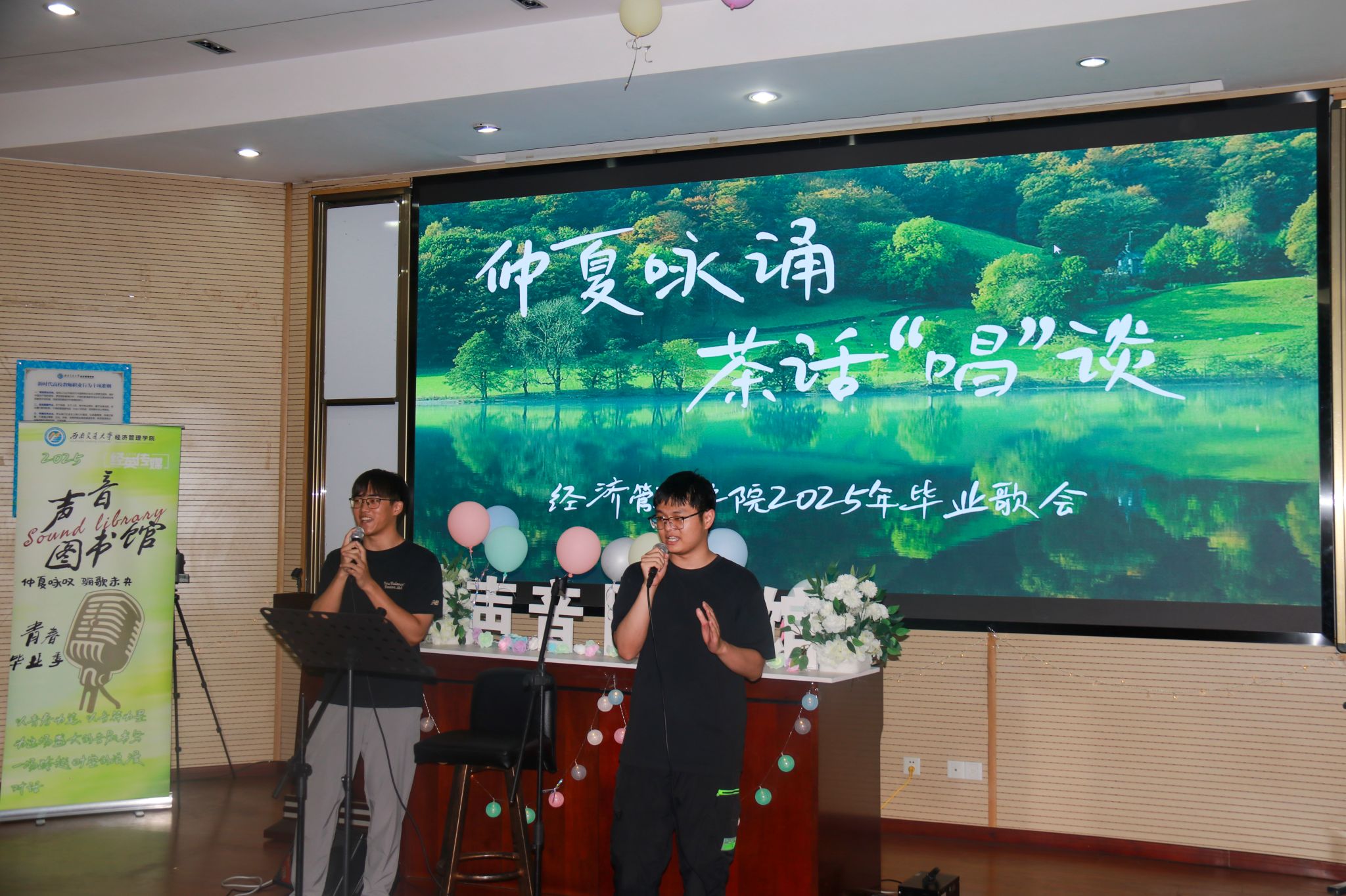 《匆匆那年》《岁月如歌》《你曾是少年》……2025届毕业班学子们用歌声怀念在经管学院的美好往事。那些熟悉的旋律像时间胶囊,瞬间唤回毕业生们初入校门时的记忆碎片,每一帧画面都饱含欢笑与眼泪交织的味道;歌声与话语的末尾,无一不坠着一份沉甸甸的不舍。