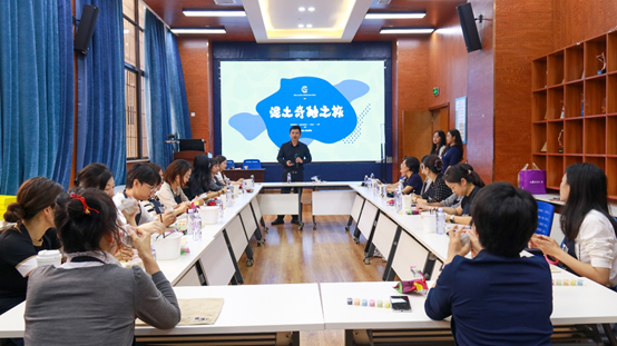 在专业人员的指导下,老师们纷纷化身“手作达人”,开始制作独属自己的陶瓷工艺品。拿出泥土,在桌上重重拍打,反复用手按压,老师们全神贯注地投入到制作流程中,在手工乐趣中释放教学研究与行政管理工作中的压力。作品初具雏形之后,老师们拿起画笔与颜料开始在泥土上描摹,将情思注入灰色的泥土中,赋予其活泼天真的生命力。
