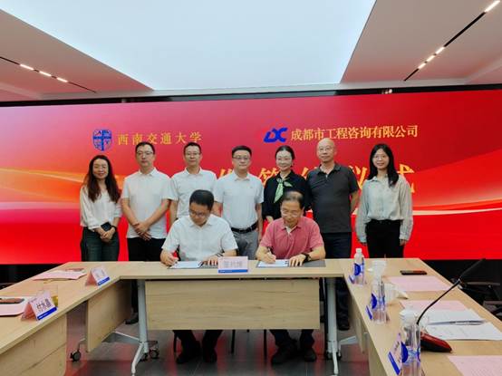 党委书记蒋佳,学院教师徐进、李强及张琦,成都市工程咨询有限公司执行董事兼总经理陈崎虎,以及副总经理付水晶、谢涛等共同出席签约仪式。