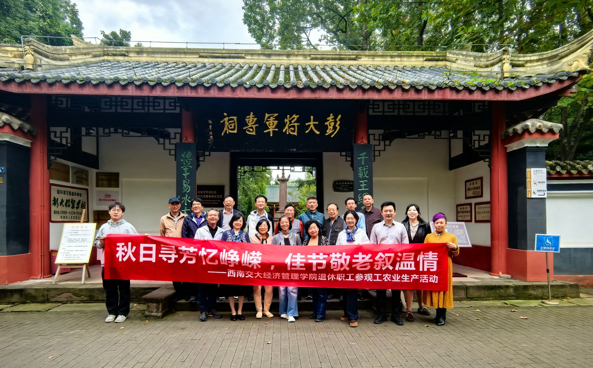 党委组织学院退休教职工赴青白江城厢镇,开展主题为“秋日寻芳忆峥嵘,佳节敬老叙温情”经管院组织离退休教职工秋游活动,学院党政领导班子成员一起参加了活动。