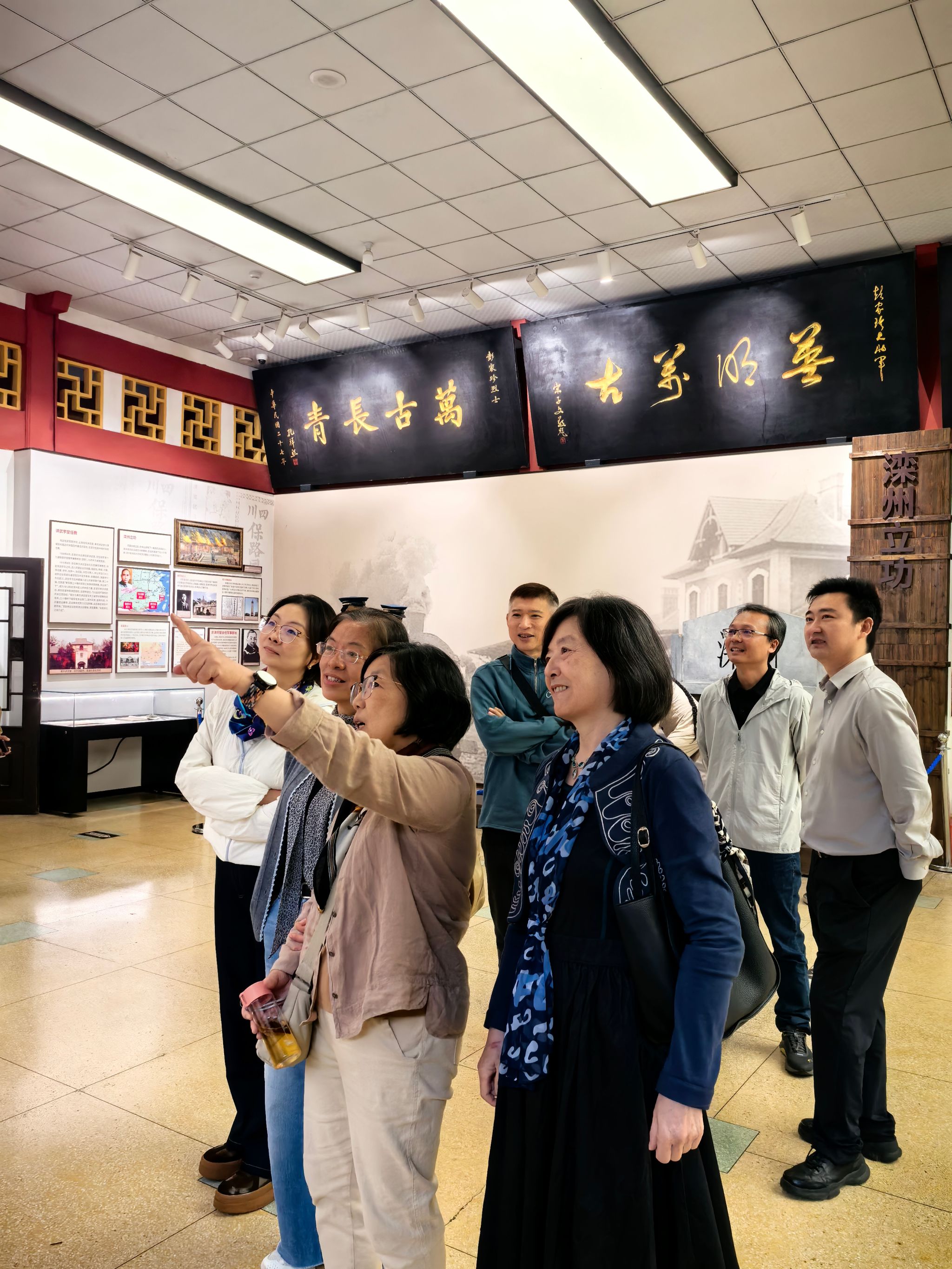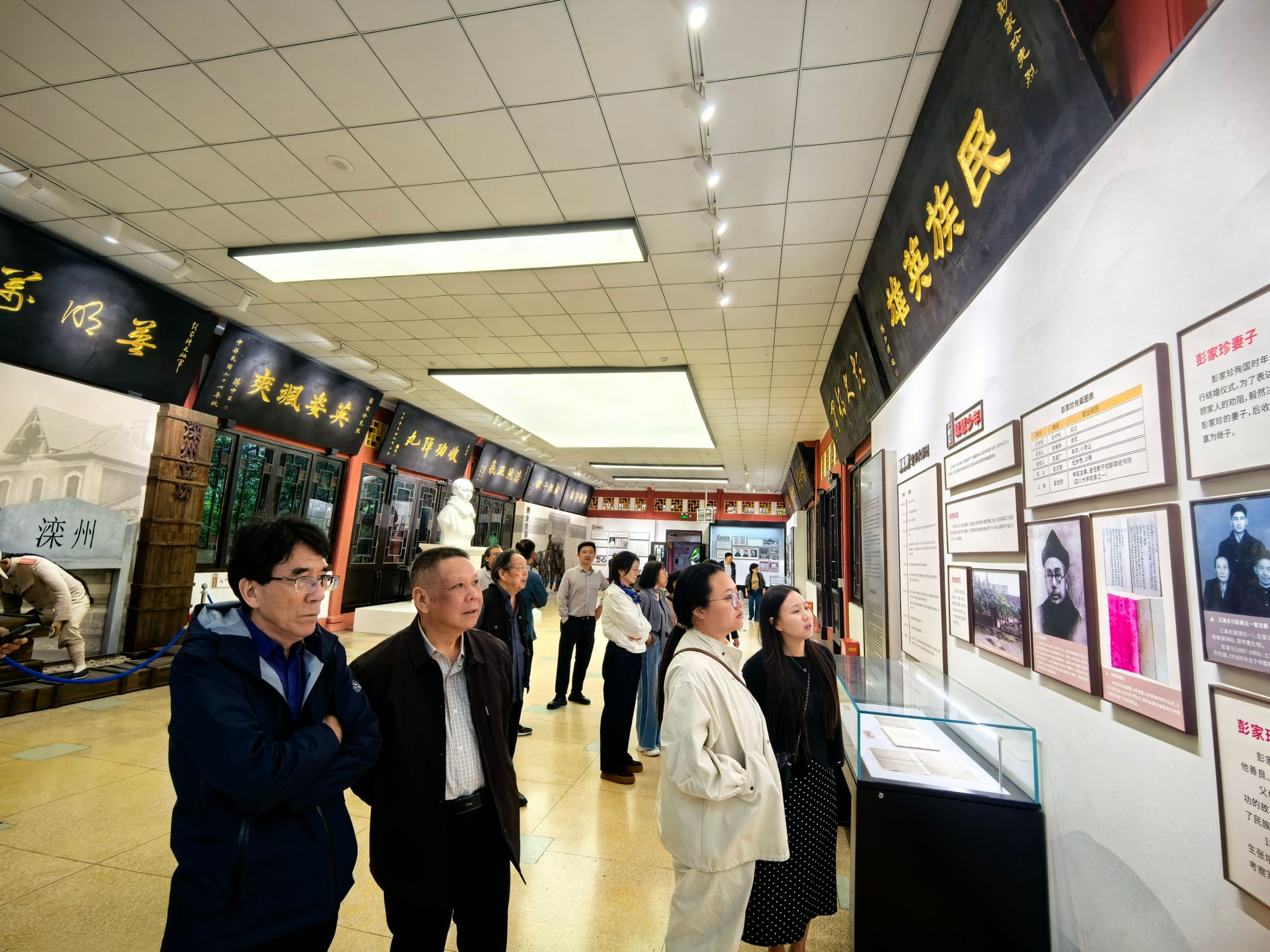 上午全体人员前往青白江城厢镇家珍公园,大家首先参观了抗日阵亡将士纪念碑,纪念碑建成于1938年,主要纪念耿明和易明道两位营长,这里也是1937年9月5日川军出征宣誓的地方。老师们共同缅怀革命先辈,传承红色精神。然后又来到彭大将军专祠进行参观,彭大将军专祠建于1938年,为川西民居传统建筑,坐南向北,占地面积10250平方米,建筑面积2650平方米。该专祠是为纪念辛亥革命著名英烈彭家珍而建,陈列孙中山题词“我老彭收功弹丸”及历史人物题写匾额。大家参观了彭大将军生平展,并在一幅幅展板、一张张图片中了解了先烈短暂而光荣的一生、感悟了先烈坚定而崇高的革命理想。