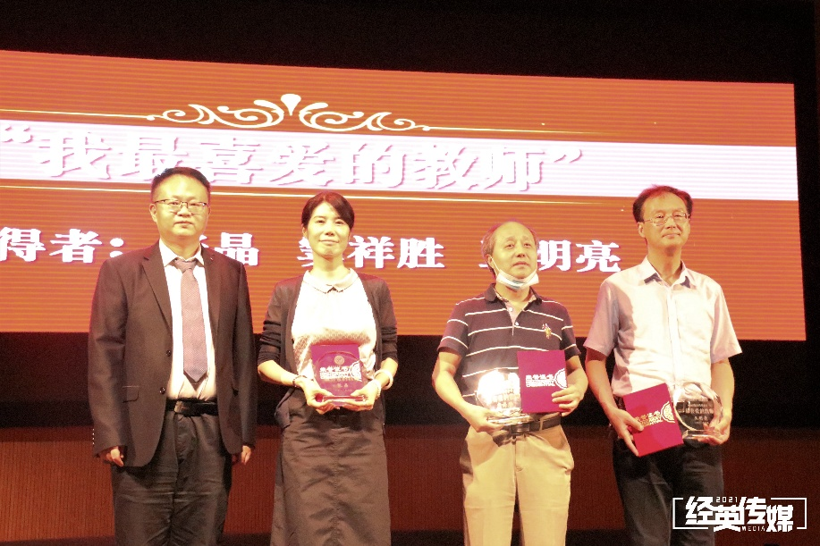 2021届本科毕业生“我最喜欢的教师”获奖名单,他们分别是张晶、窦祥胜、王明亮三位老师,郭强院长为三位老师颁发了奖杯和证书。