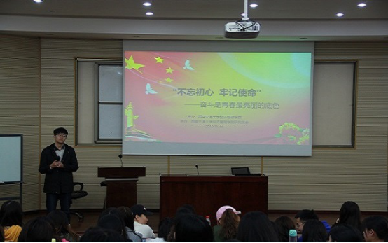 最后,辅导员胡广瀚老师对此次主题教育活动进行了总结,他对各个班同学们分享的主题进行了简单的点评,尤其重点强调了同学们的身心健康,提醒同学们要多与身边同学、老师进行交流,遇到问题及时处理,正确面对学习和生活上的困难。另外胡老师还提到,我们作为新时代的青年,应该将个人奋斗融入国家梦想之中,积极进取,开拓创新,不忘初心,牢记使命。