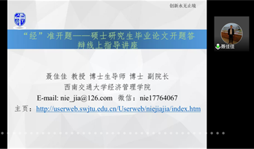 首先,主持人郑忆楠介绍了此次活动的流程与意义。在新冠疫情期间,聂老师通过线上交流的形式为同学们分享关于论文选题和答辩的注意事项,旨在为困惑迷茫的同学指引道路、提供建议。