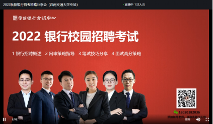 专场)由学信金融网校以直播形式开展。本次活动以2022年各大银行开始的校园招聘活动为背景,以交大研究生为对象,以分享银行应聘基本技巧,提高网申通过率为主要内容,助力交大学子应聘。